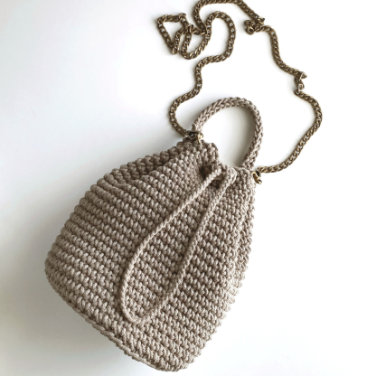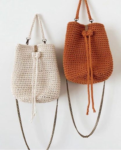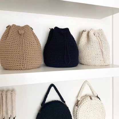 Les photos montrent le sac en Bobbiny junior sand, noir, naturel et terracotta mais vous aurez le choix de le crocheter dans de nombreux coloris du nuancier Bobbiny