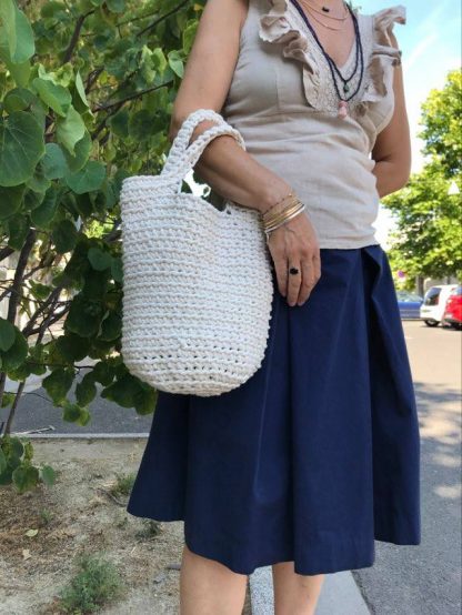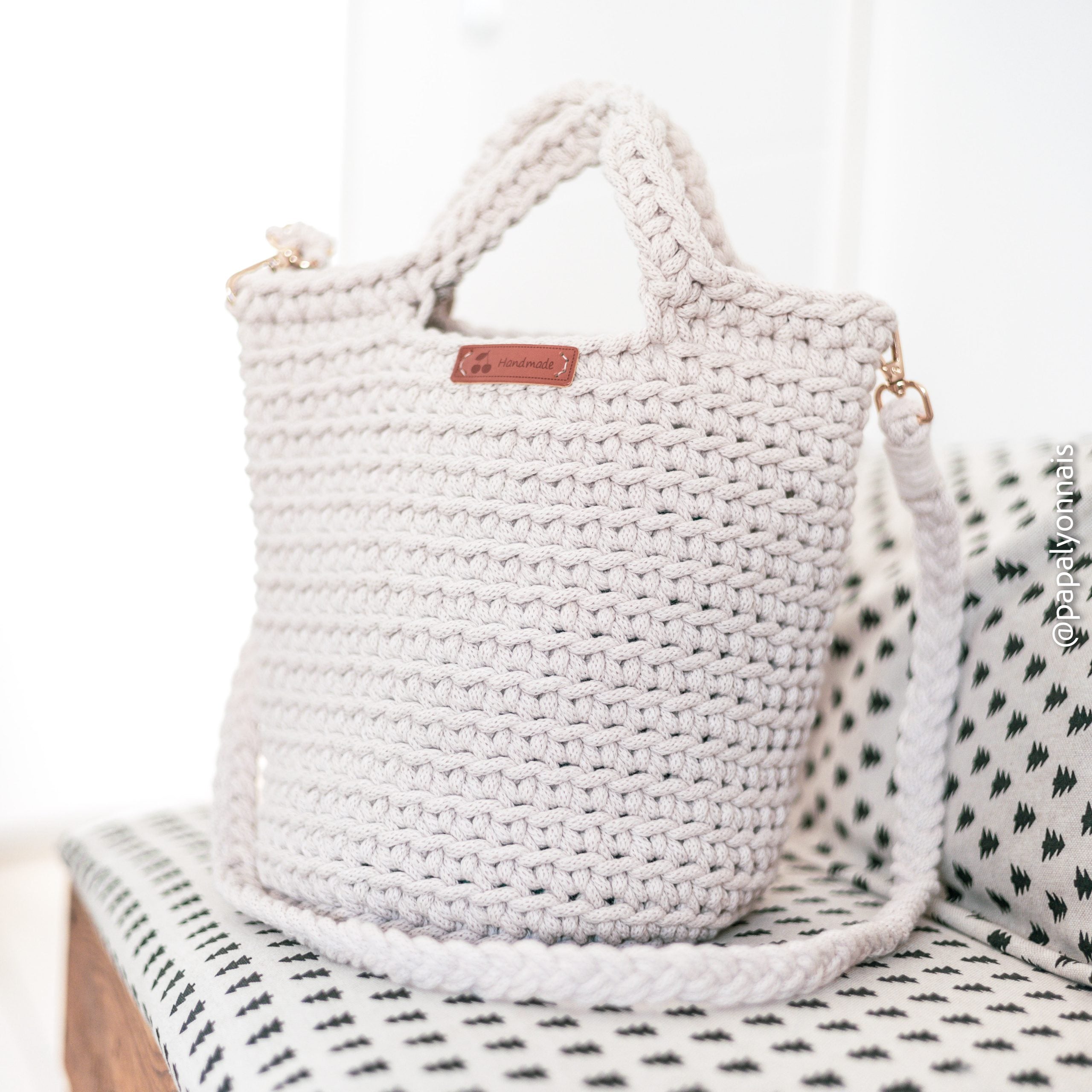Ce sac en crochet est votre nouvel accessoire fait main . Au quotidien il apportera une touche minimaliste scandinave à toutes vos tenues. Il mesure environ 40 cm x 26,5 cm.