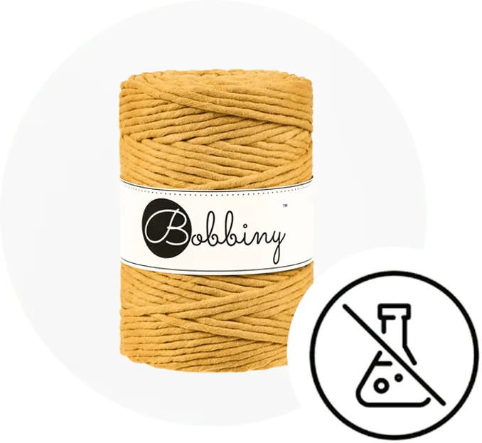 Nous n’utilisons ni eau ni produit chimique dans notre processus de création de corde. Nous essayons également de réduire notre consommation d’énergie ainsi que de CO2. La corde est enroulée sur une bobine de papier recyclable.