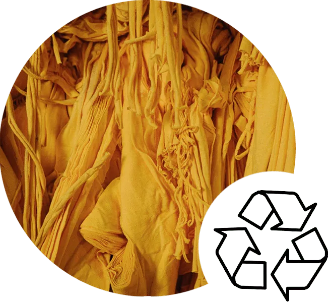 Nous recyclons des matériaux considérés comme usés ou en fin de vie et nous créons nos cordes avec! Le textile recyclé à partir duquel le fil est fabriqué provient des chutes de production des usines ainsi que des consommateurs (vous) sous forme de vêtements usagés et autres textile en coton.