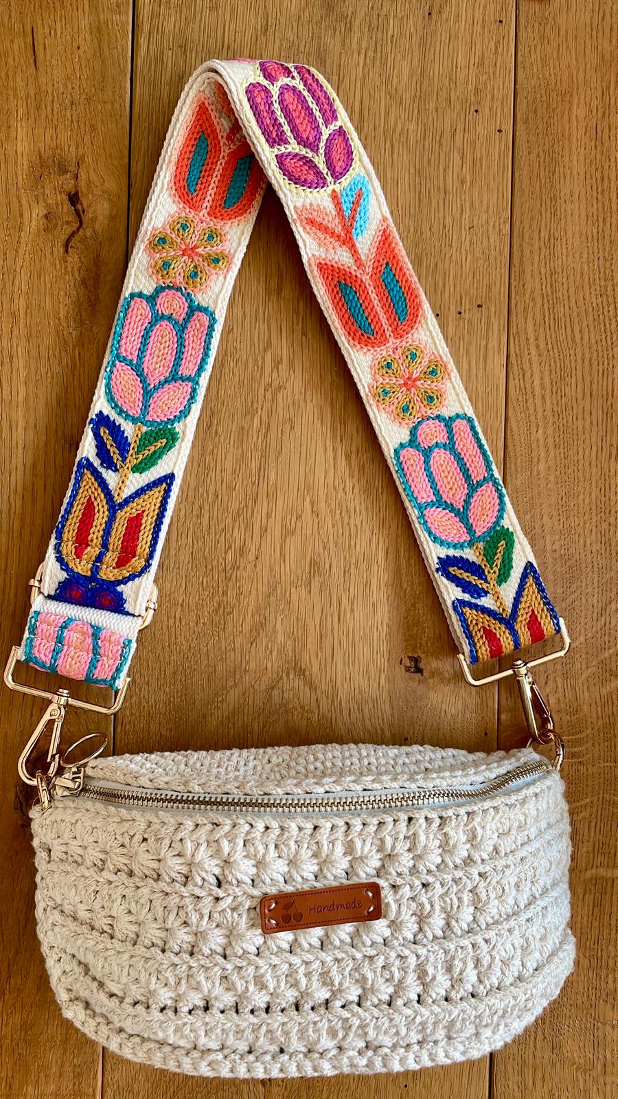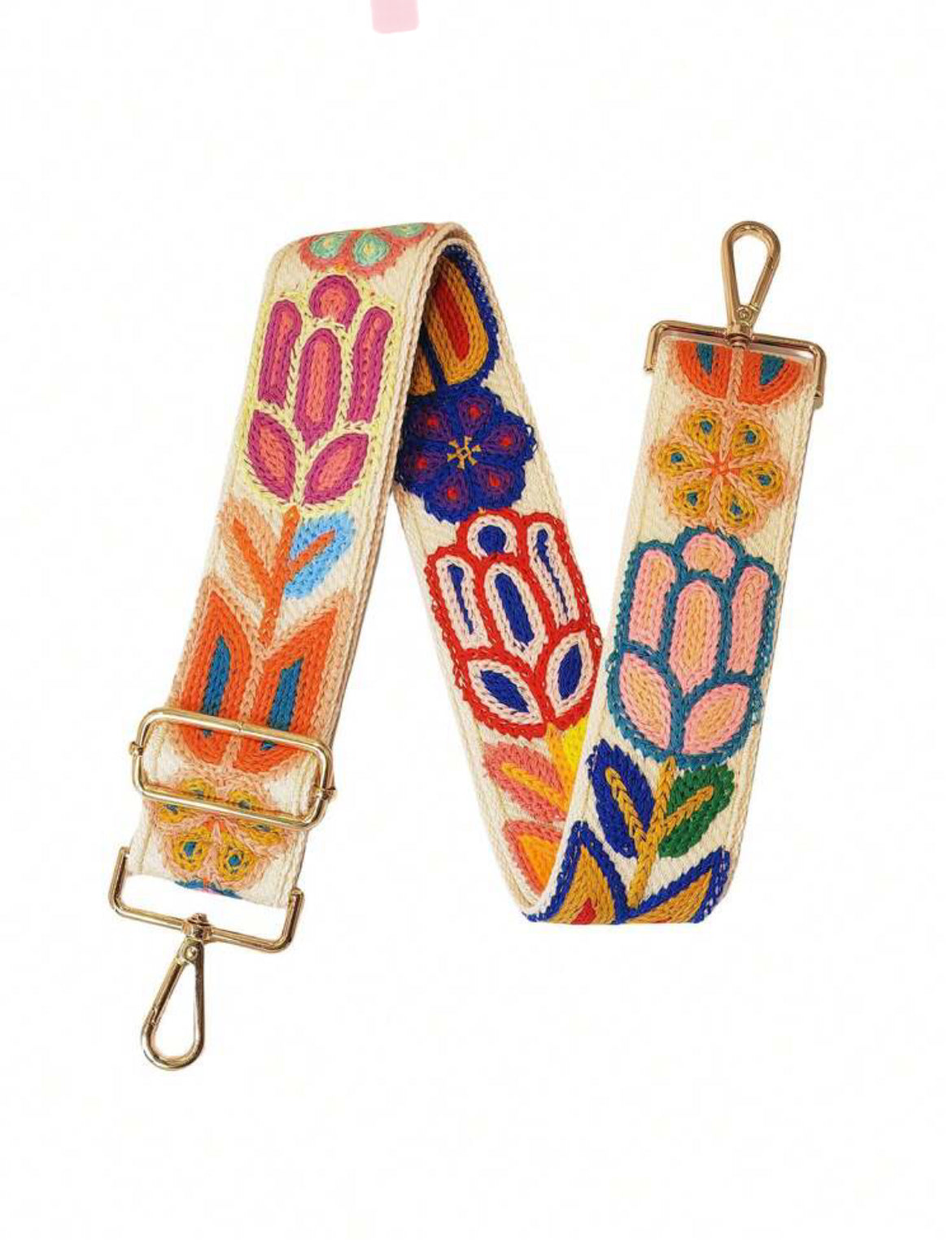 Bandoulière de Sac ALMA - Motifs Fleurs Brodées Sangle Réglable et Amovible 5cm