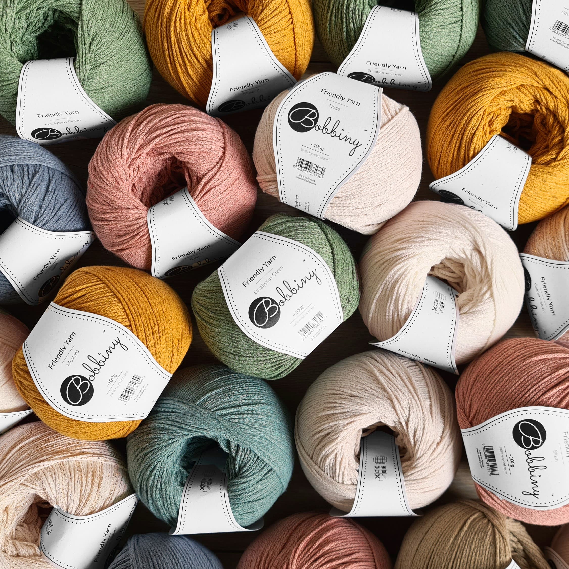 Friendly Yarn est le nouveau fil de notre gamme Bobbiny. Ce fil de coton est fabriqué avec un fil plus fin, idéal pour la création de vêtements ou d’amigurumis qui seront légers et doux au toucher. Ce fil est fabriqué en 100% coton recyclé.