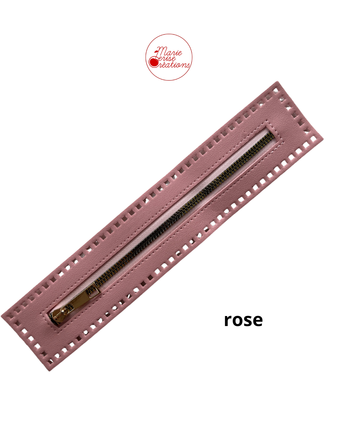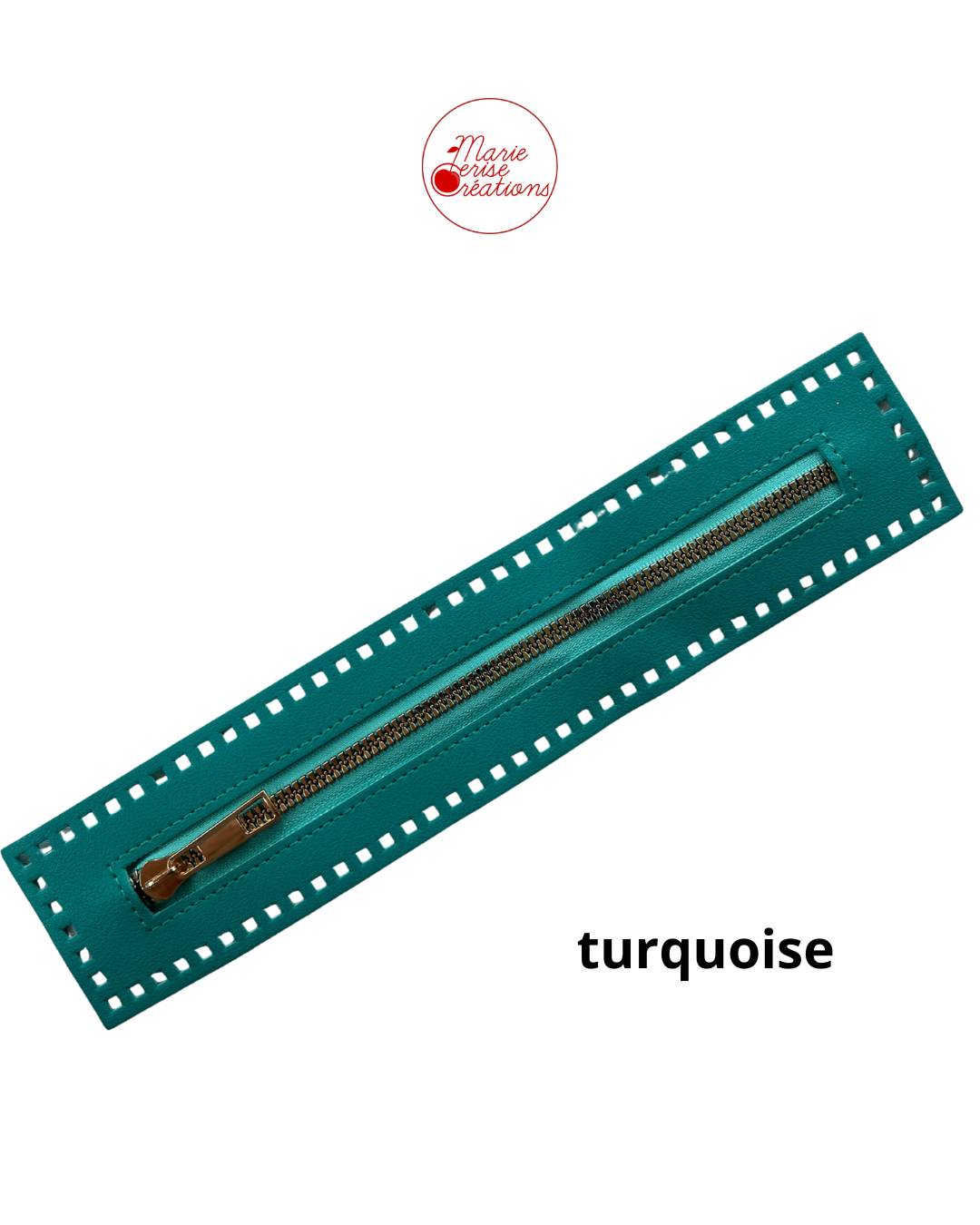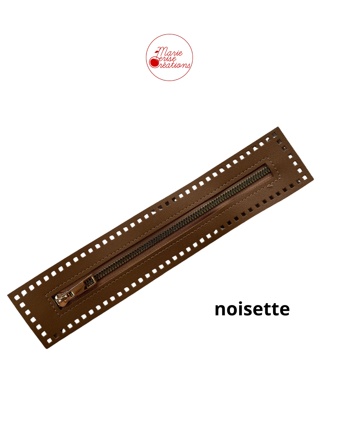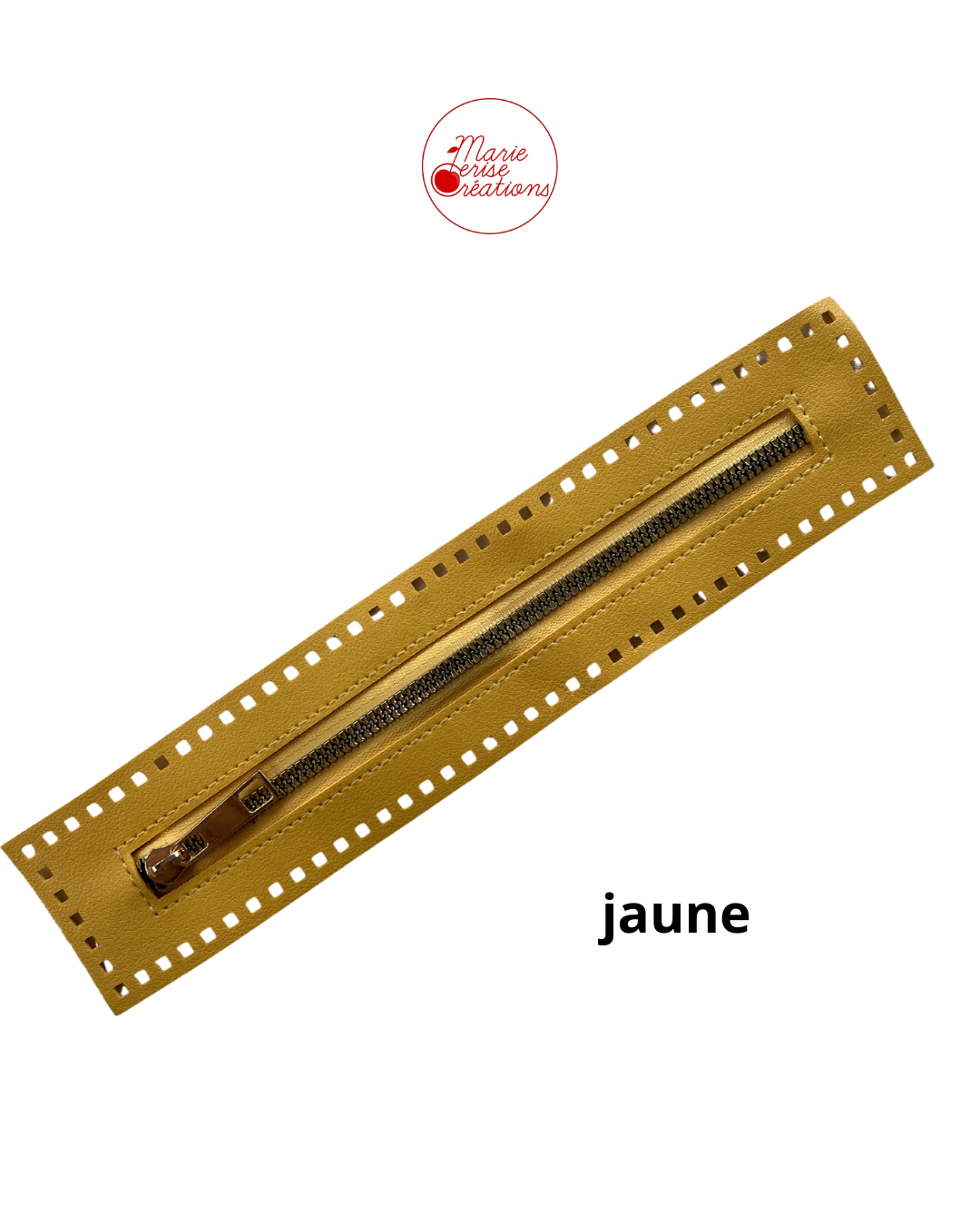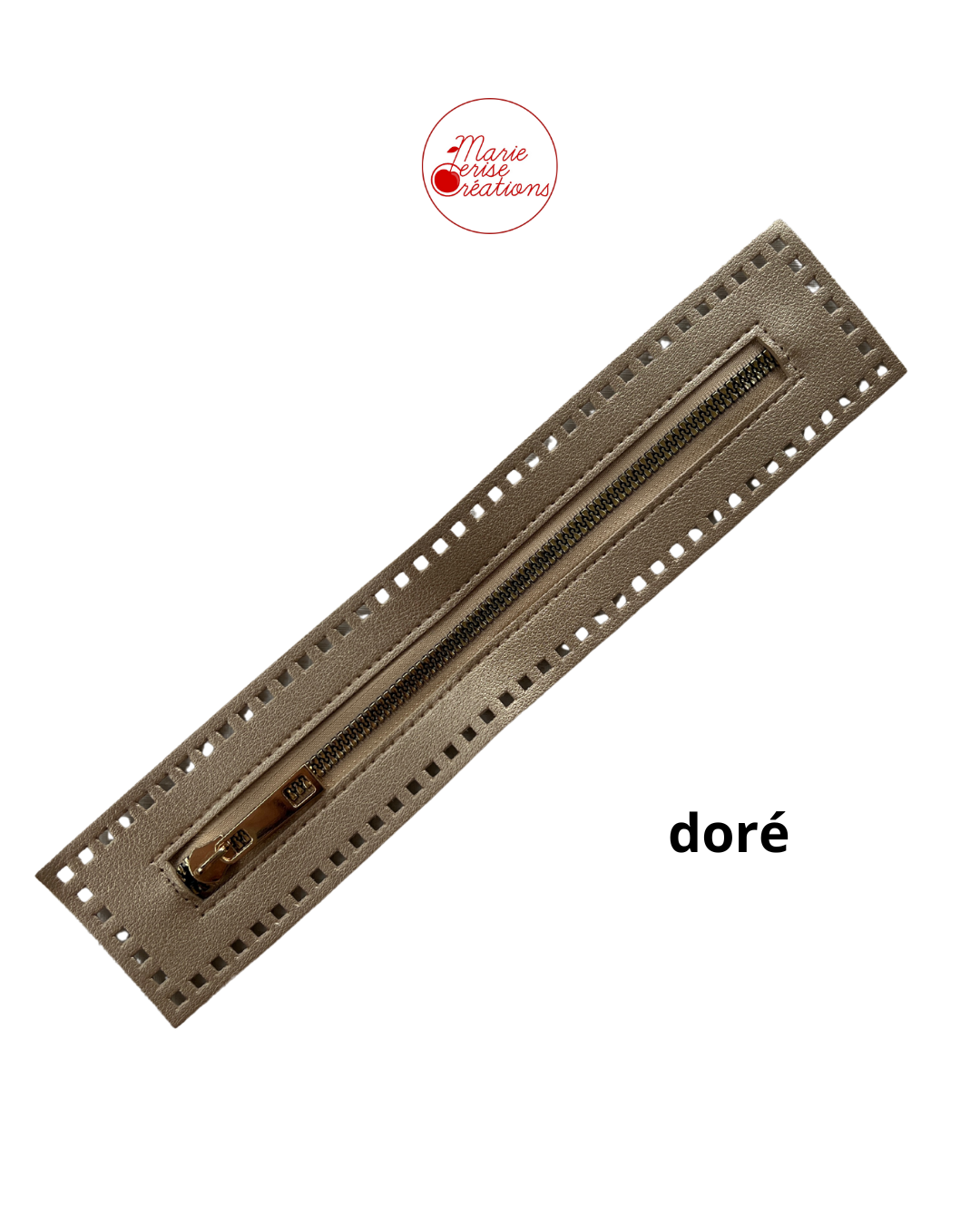 Si vous détestez les coutures à la main, vous pourrez facilement crocheter cette jolie fermeture éclair pré-perçée en simili cuir et métal doré sur toutes vos créations au crochet (sacs, trousses, ...) avec un crochet numéro 3 pour le premier rang et le fil Bobbiny junior 3mm ou scheepjes Cahlista