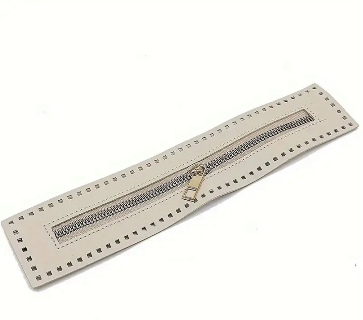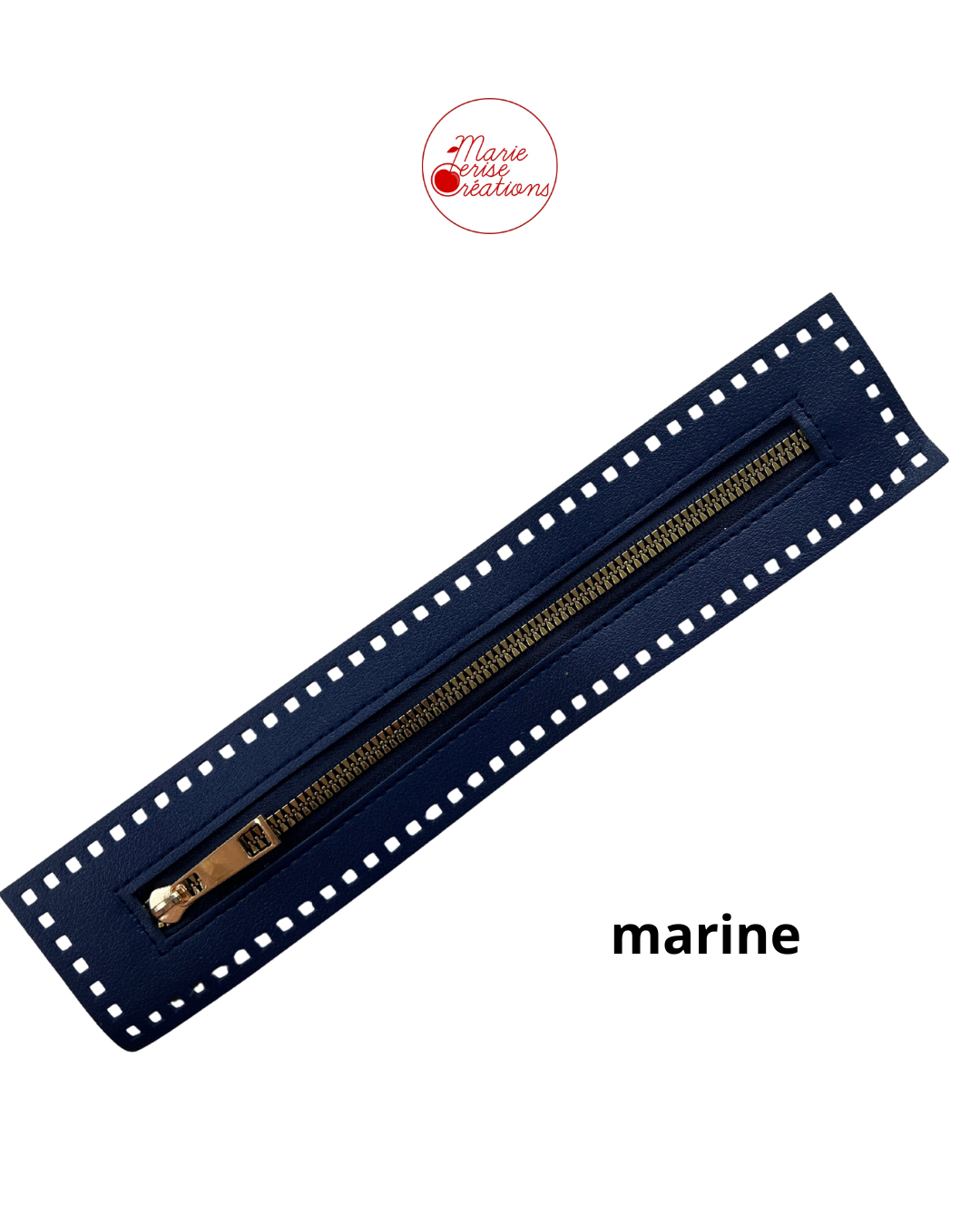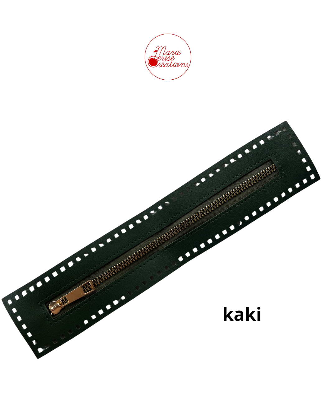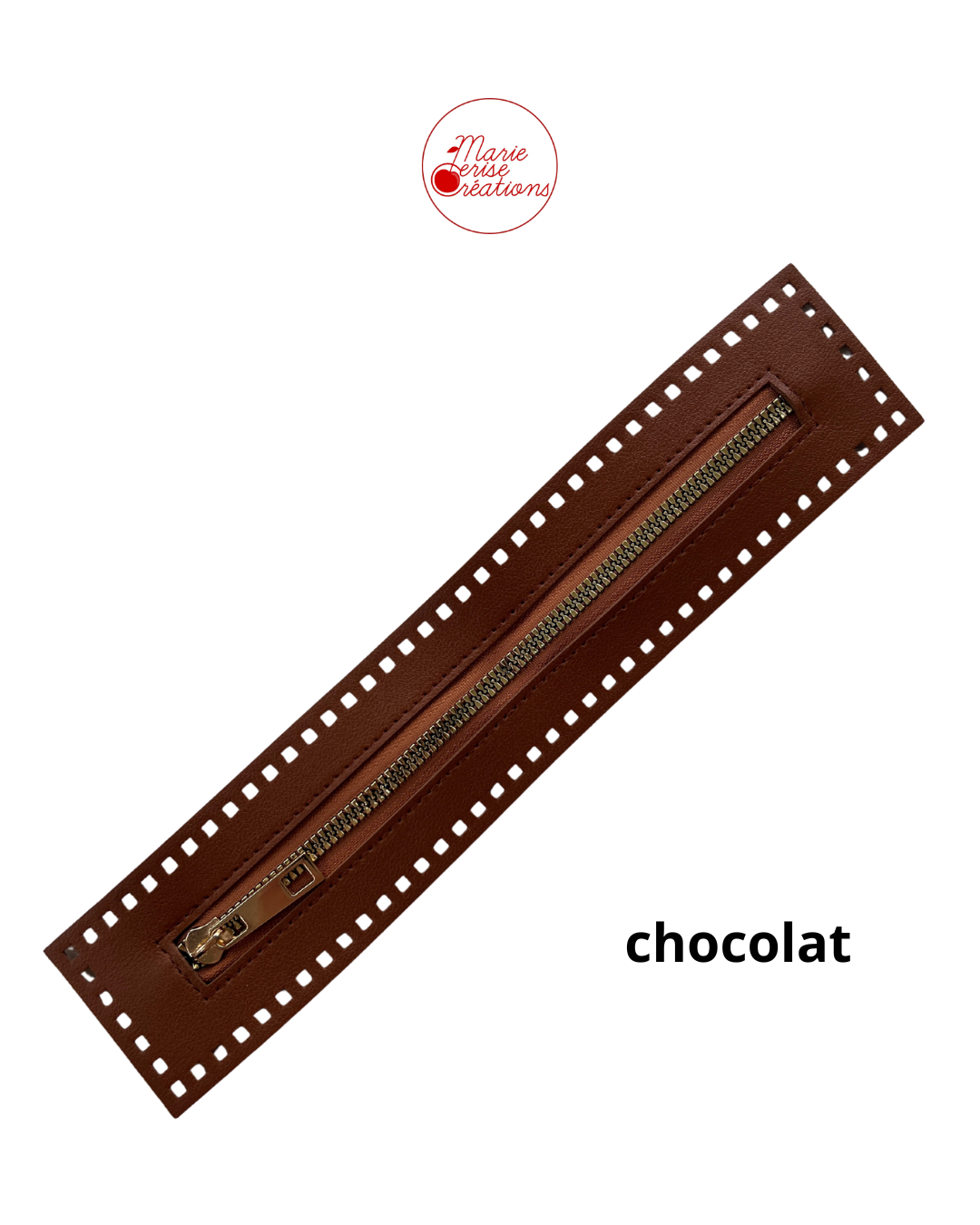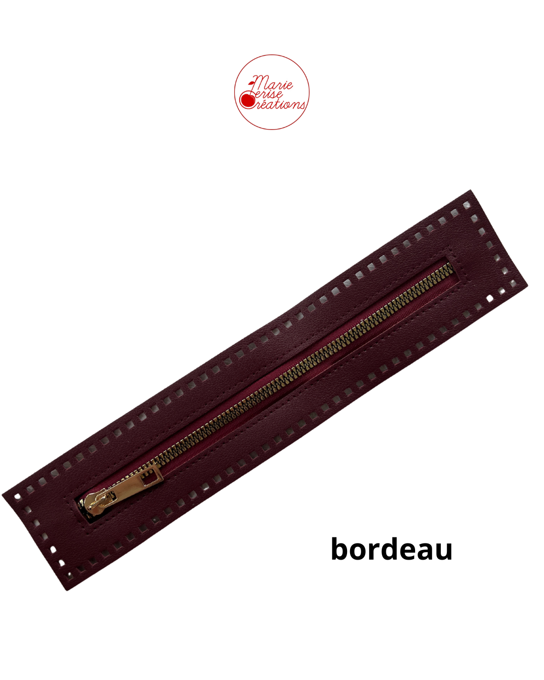 Si vous détestez les coutures à la main, vous pourrez facilement crocheter cette jolie fermeture éclair pré-perçée en simili cuir et métal doré sur toutes vos créations au crochet (sacs, trousses, ...) avec un crochet numéro 3 pour le premier rang et le fil Bobbiny junior 3mm ou scheepjes Cahlista