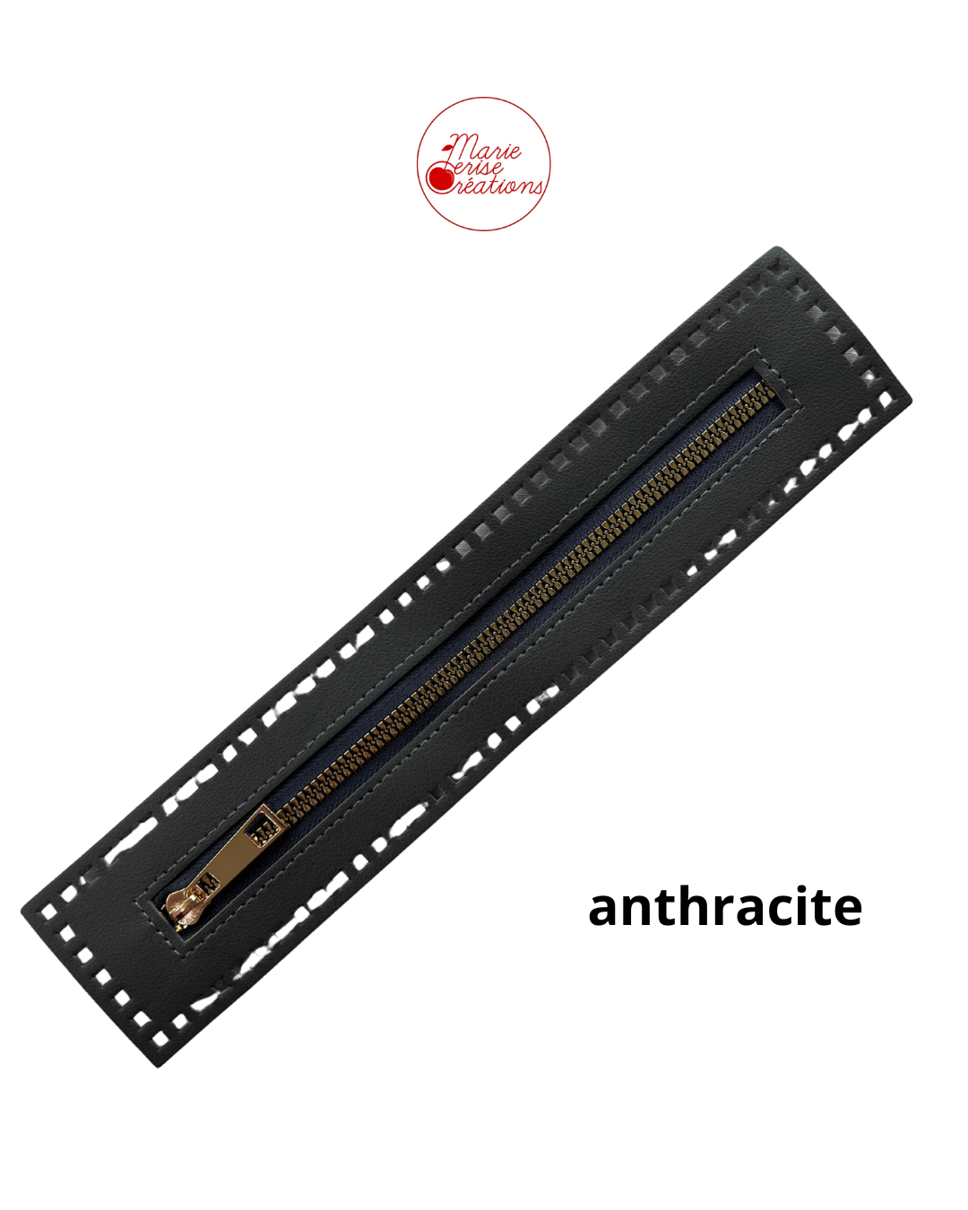Fermeture éclair simili cuir percé 22cm sac et trousse crochet 15 coloris