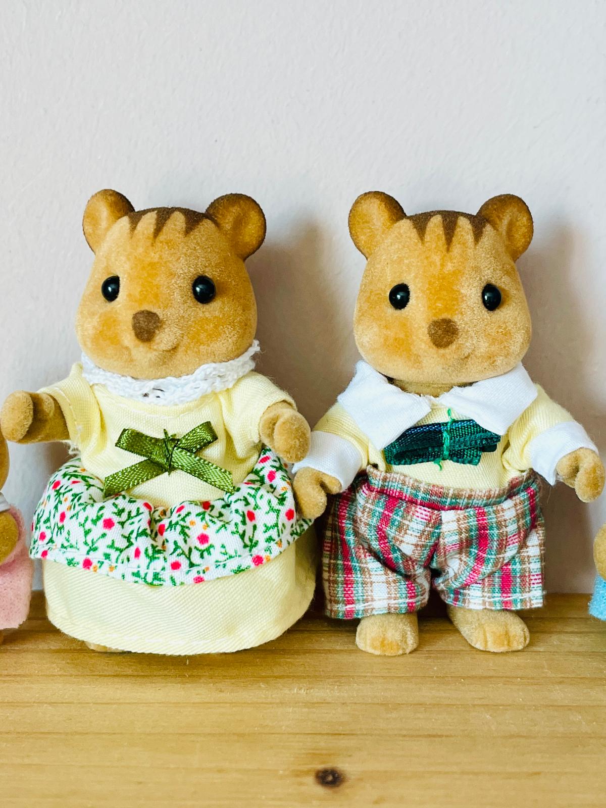Marcel et Adèle 2 Ecureuils Miniatures Articulés et leurs Vêtements pour Maisons de Poupées