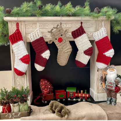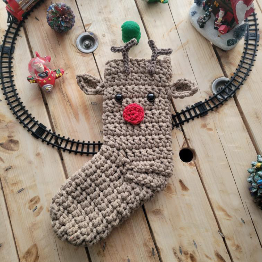 KIT CROCHET : La paire Chaussette de Noël RUDOLF - Niveau Intermédiaire