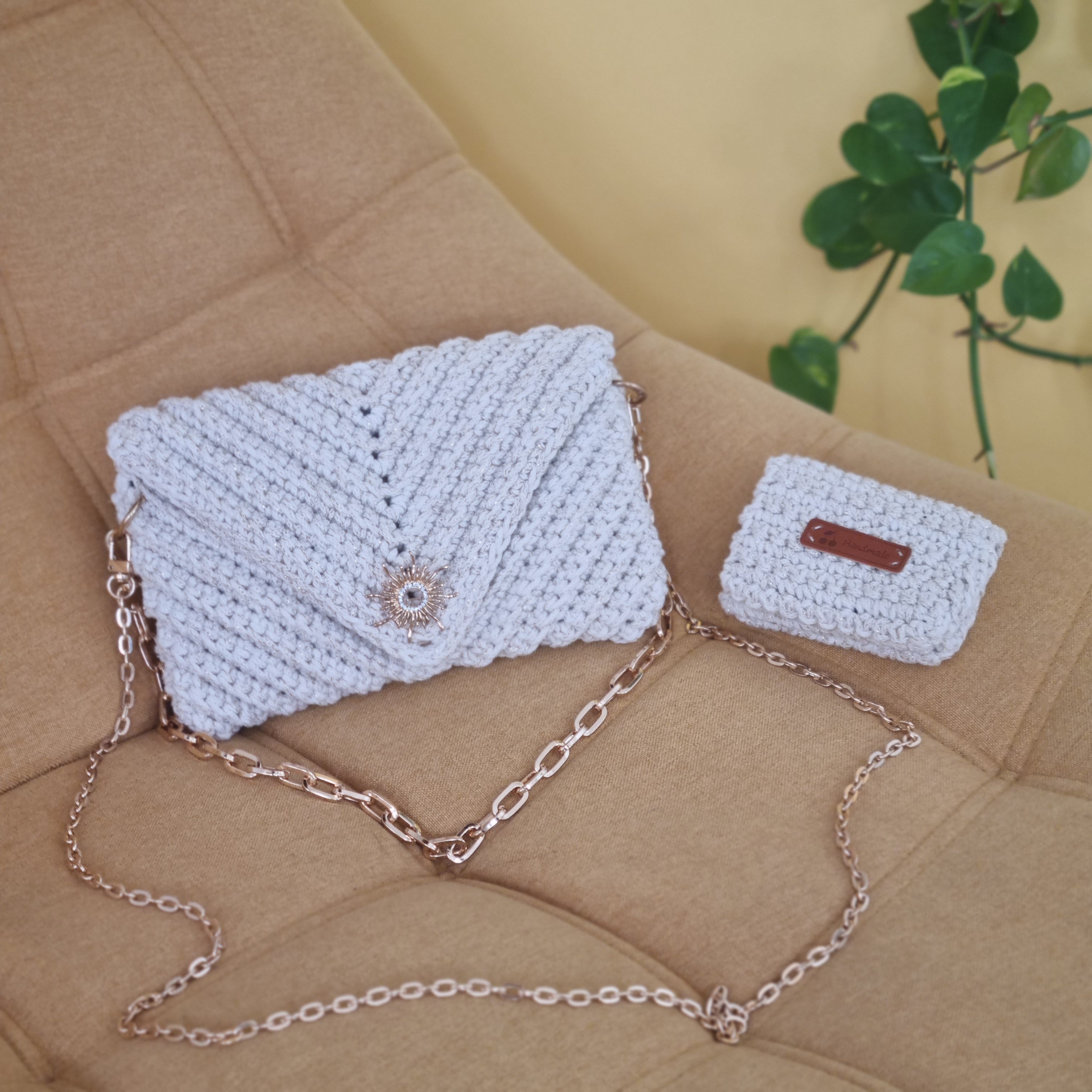 KIT CROCHET : La pochette de fêtes et la porte carte AURORE - Broche Bijou Ginseng ou Soleil