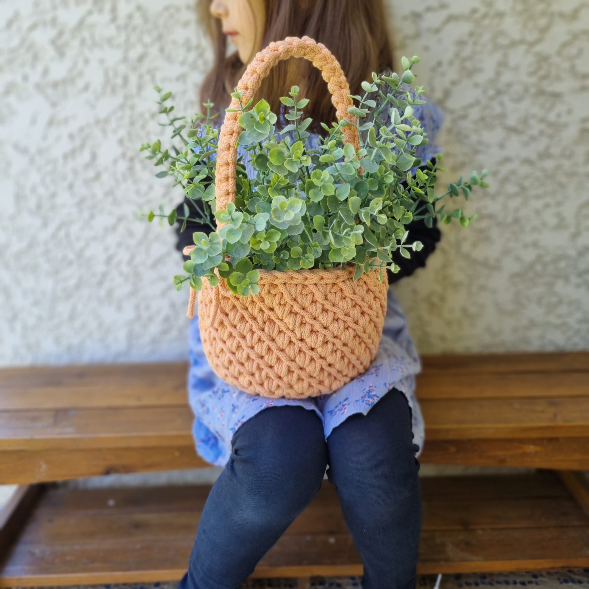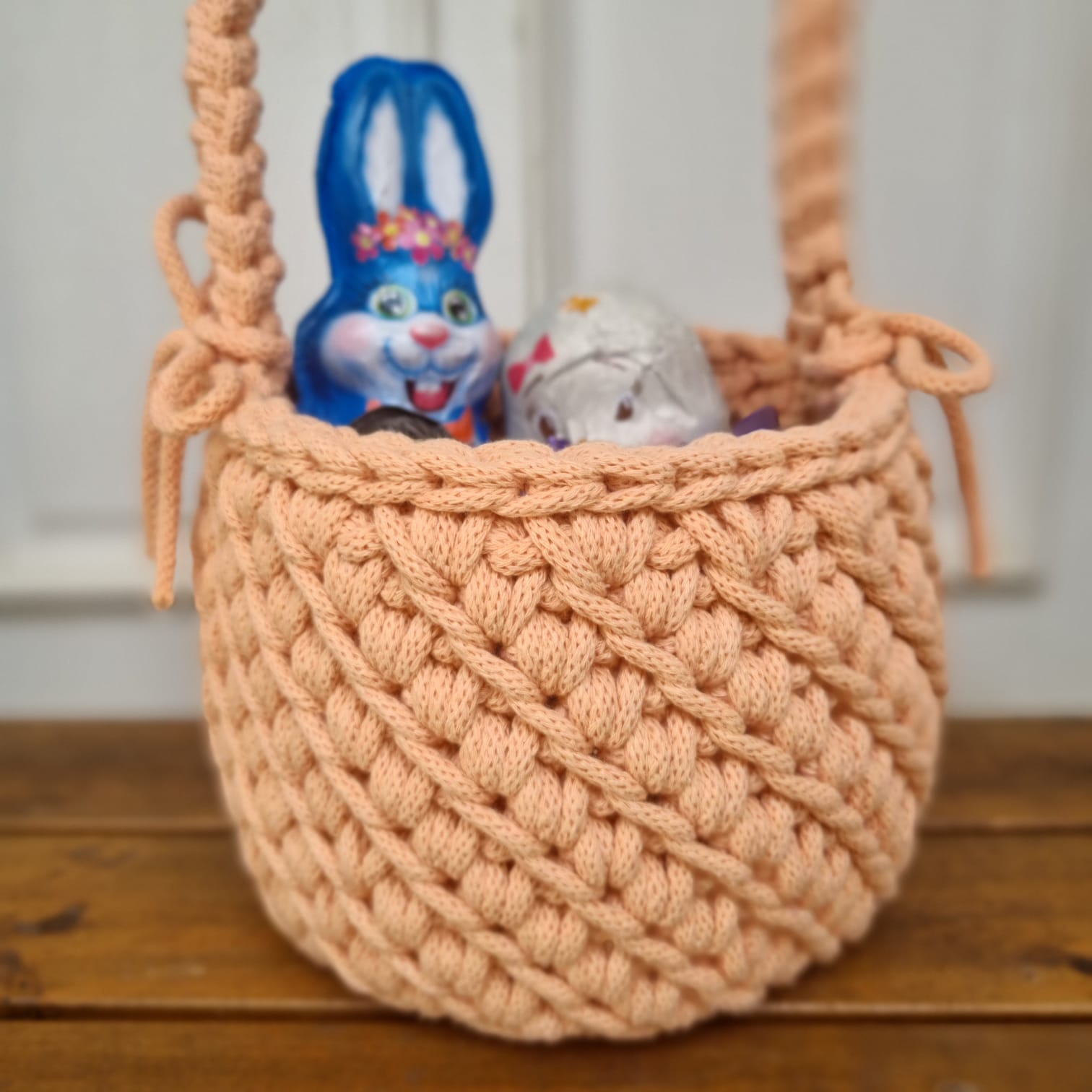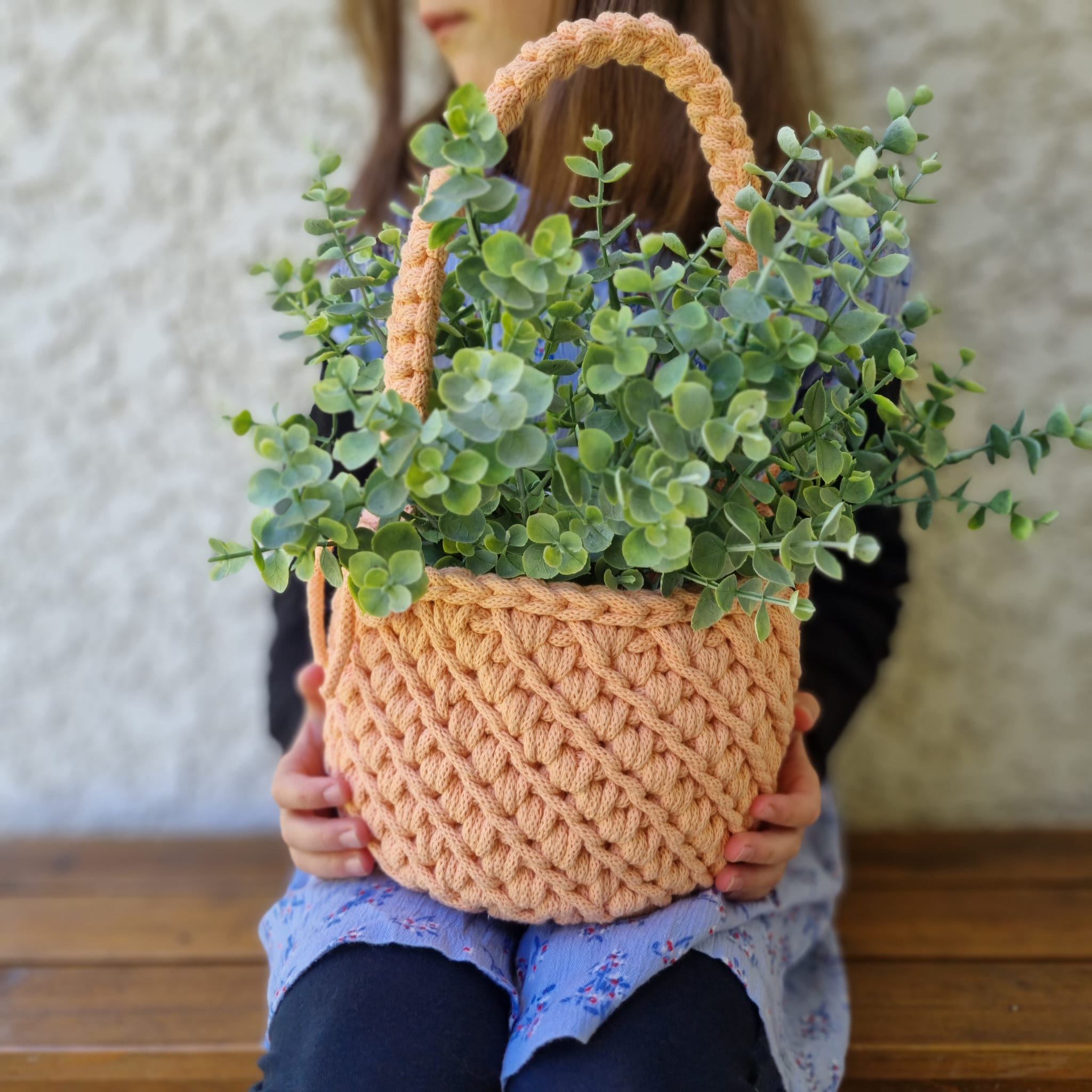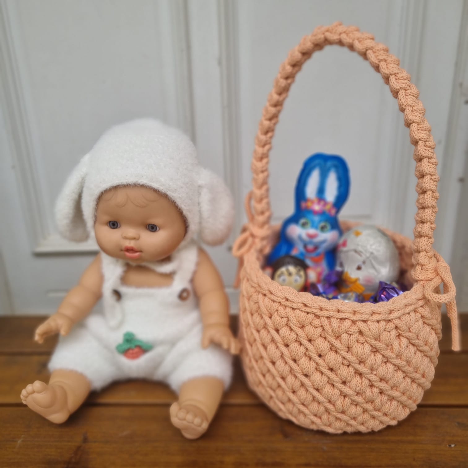 Les photos montrent les panier lapin en Bobbiny Peach Fuzz