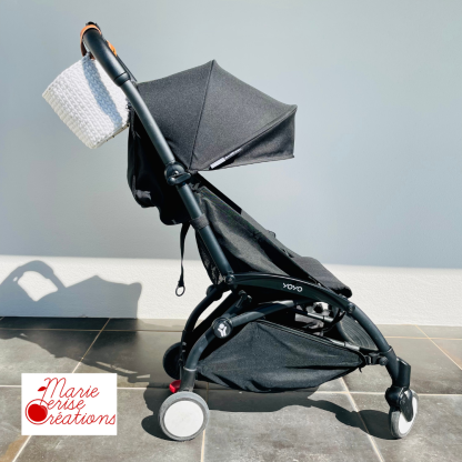 Il se fixe également à la barre de votre poussette et permet d’avoir tous les essentiels de bébé et maman à portée de main
