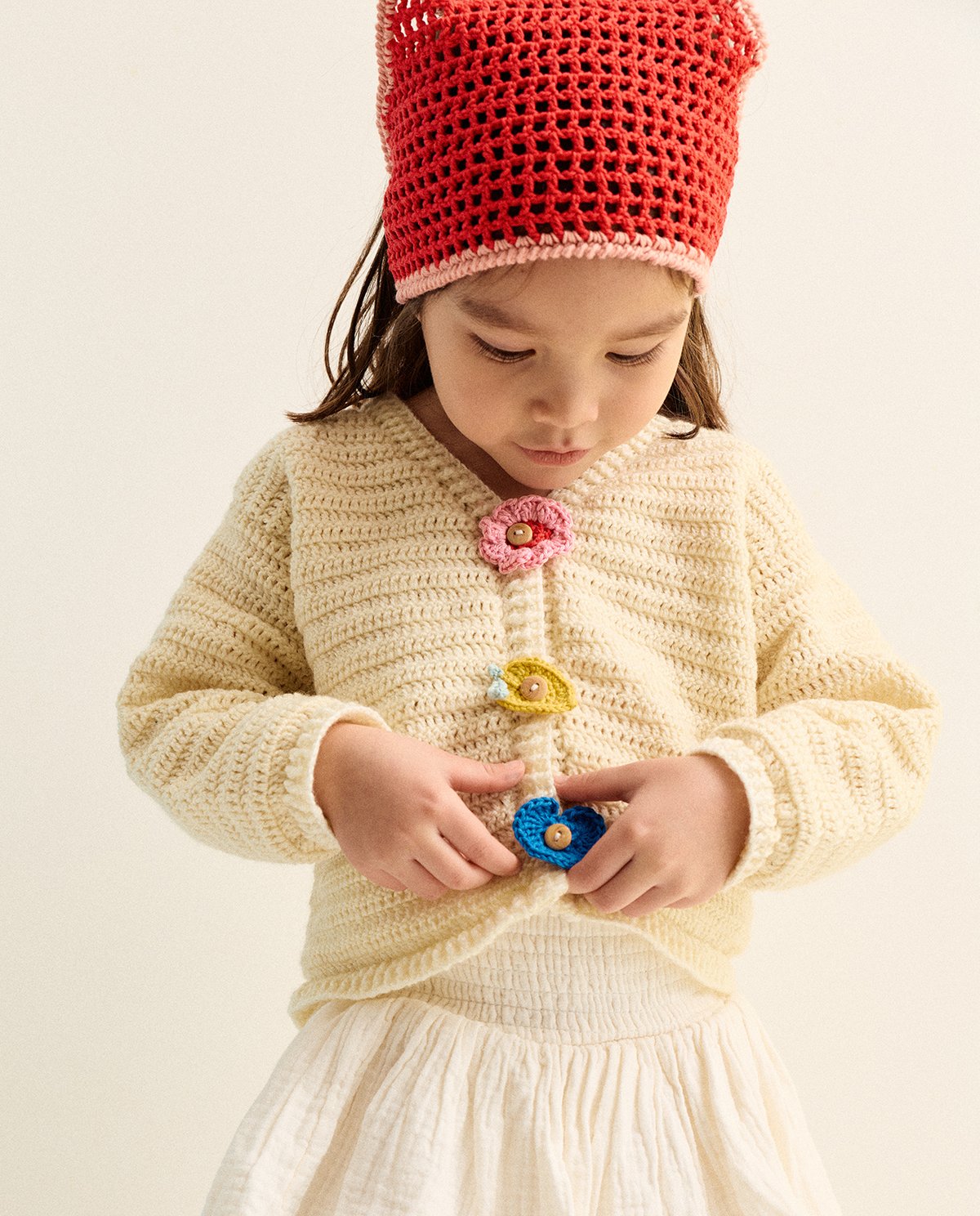Kit Crochet Phildar : le gilet fille MAYE en phil Super Baby et Coton 3