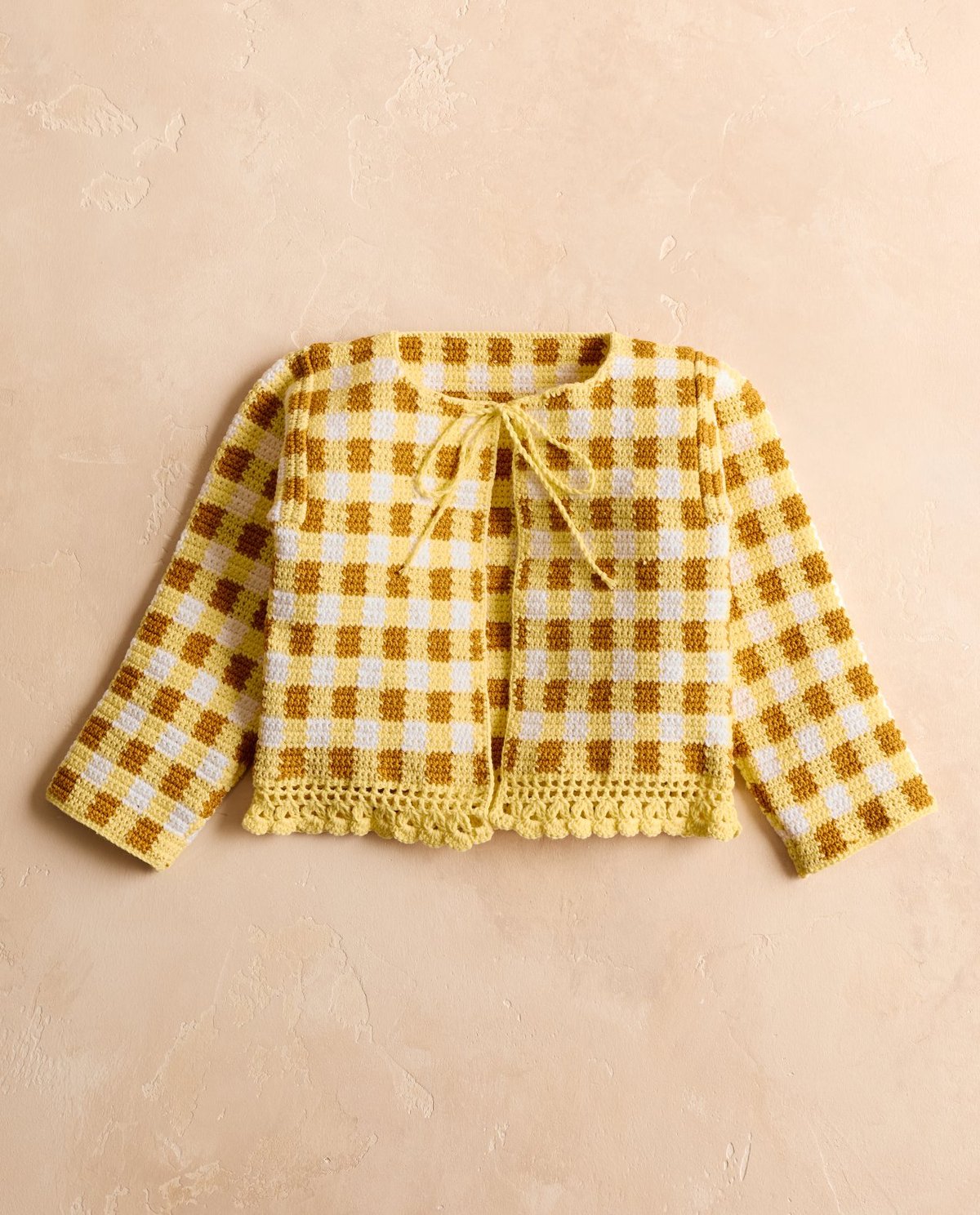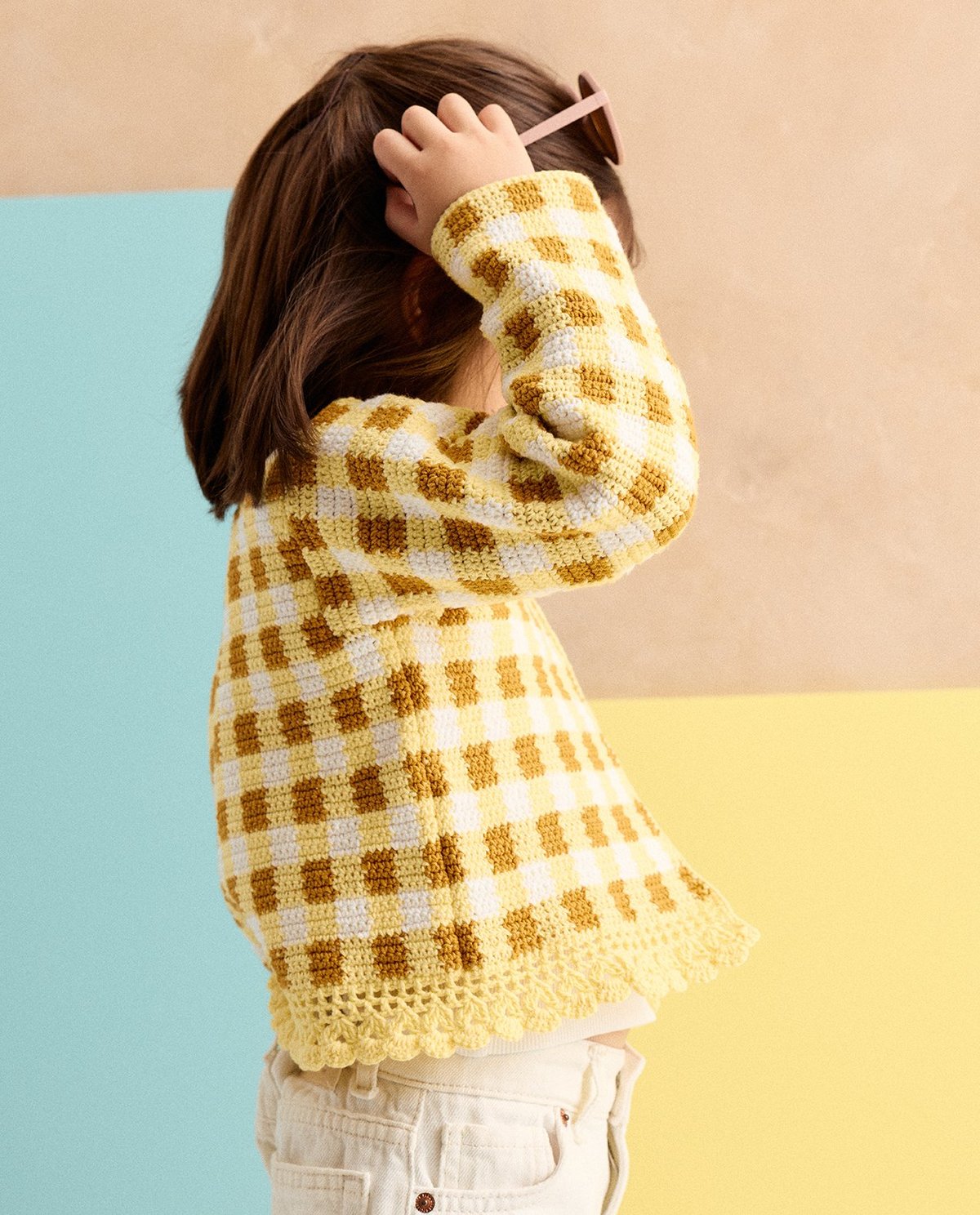 Kit Crochet Phildar : le gilet fille imprimé vichy MELIA en phil cabotine 3