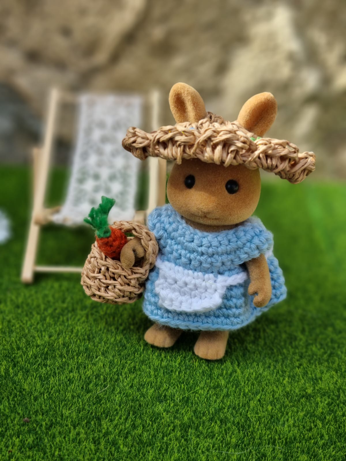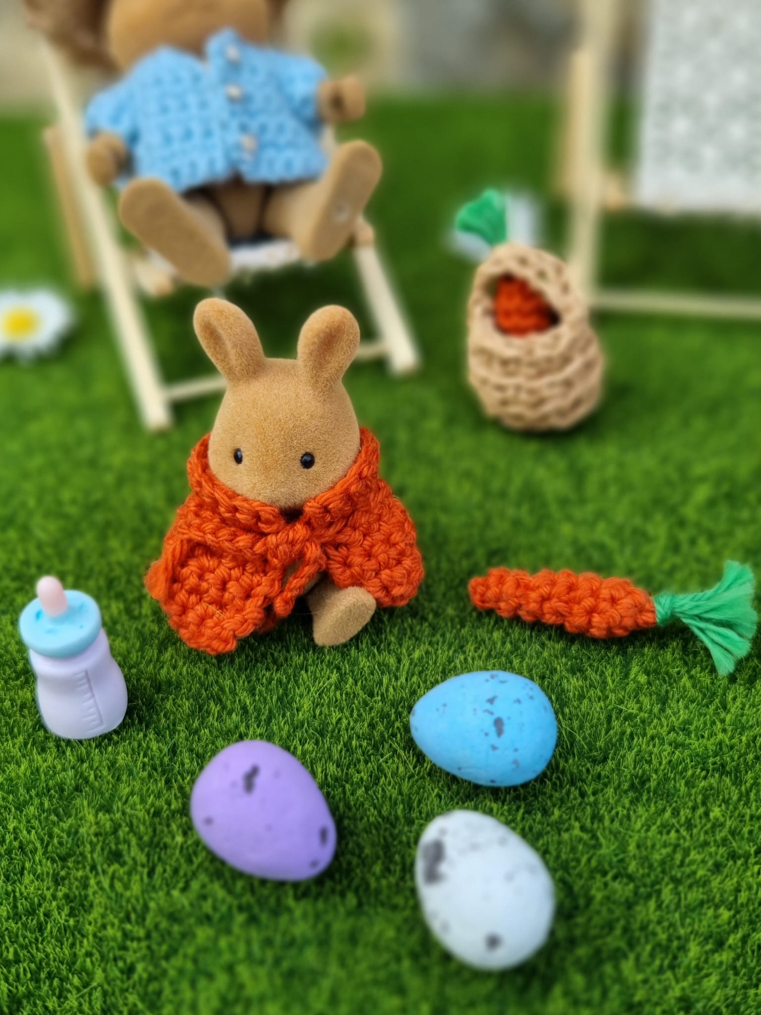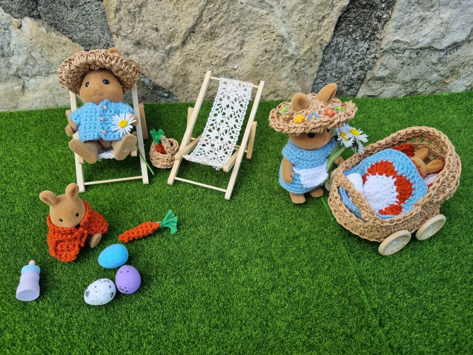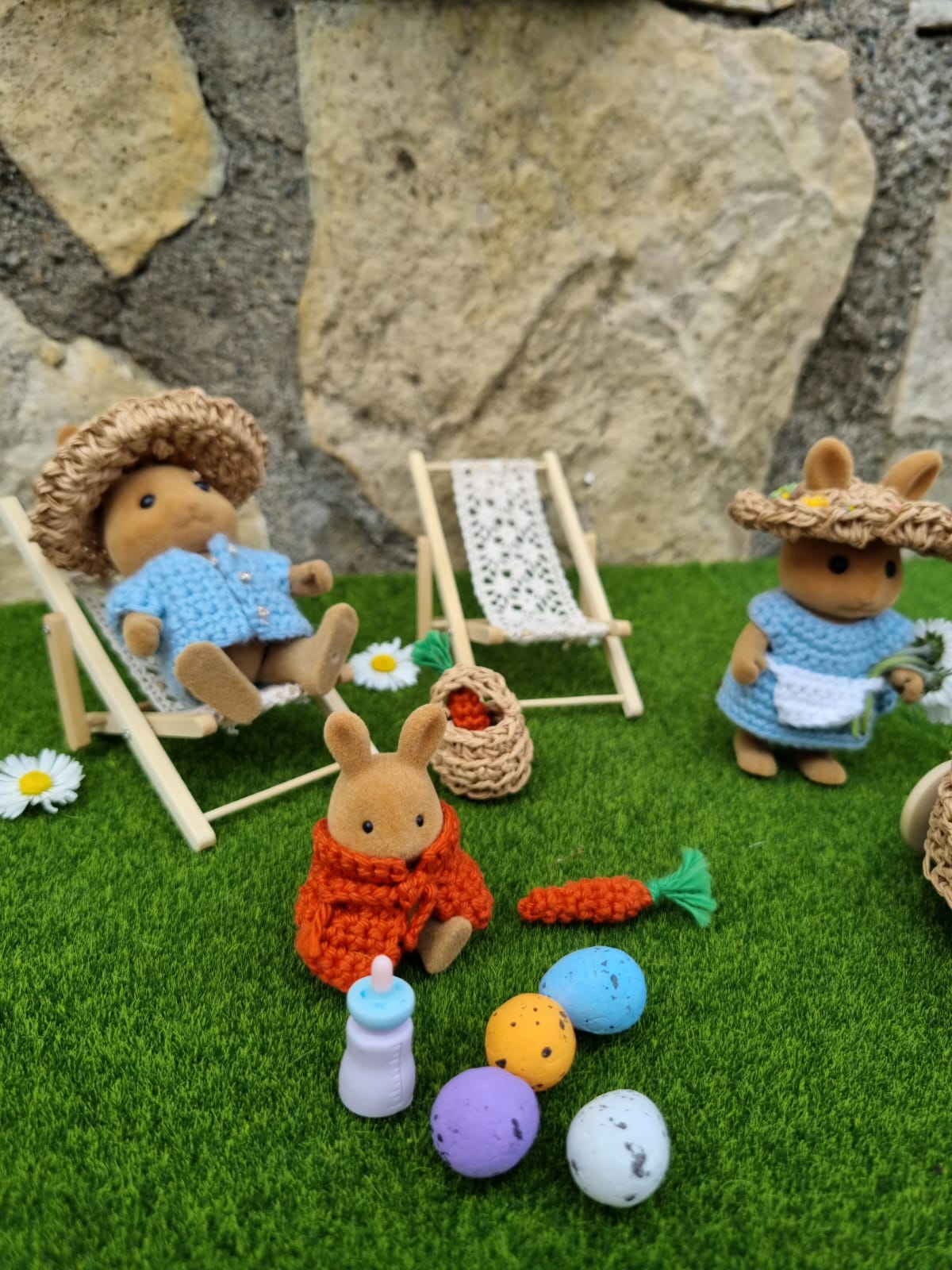 - les 4 lapins et leurs vêtements en tissu (Pierre + Joséphine + 2 bébés)