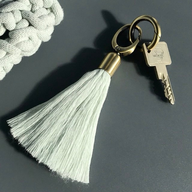 Avec ce kit DIY, vous allez pouvoir réaliser vous même facilement ce sac sans couture et son porte clés macramé chez vous. L’essentiel du matériel nécessaire à sa fabrication est compris dans ce kit créatif.