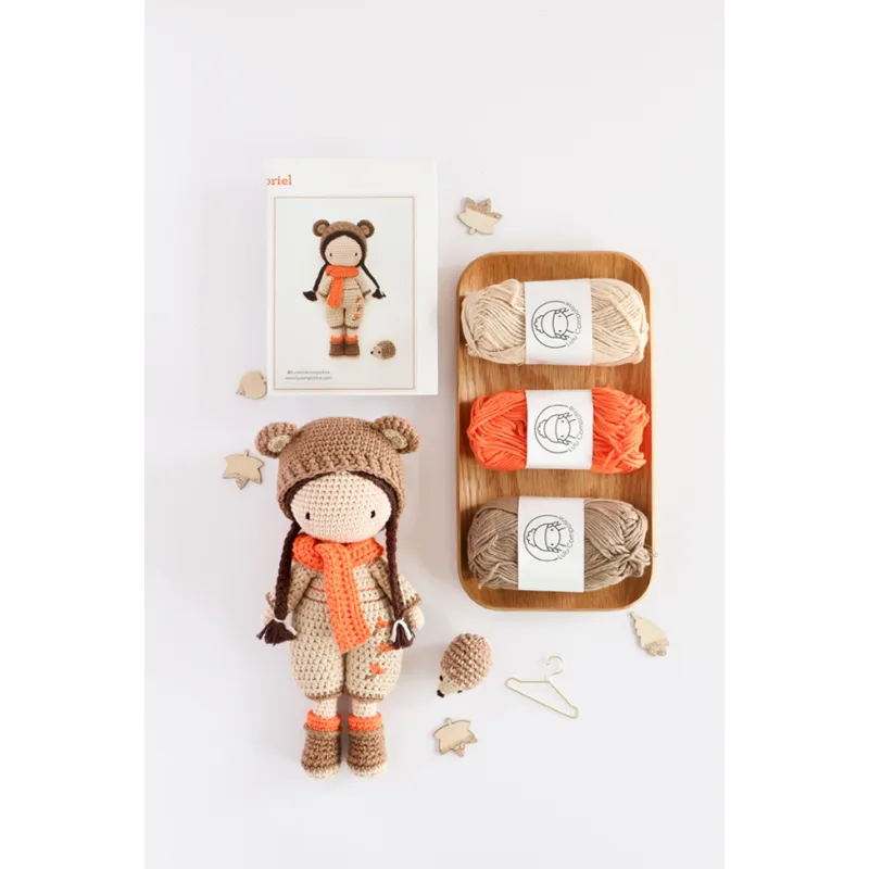 Combinaison, bonnet à oreilles, bottines, écharpe, hérisson… Voilà de quoi habiller et accessoiriser votre poupée au crochet d’automne grâce à cette pochette « Lulu en forêt » !