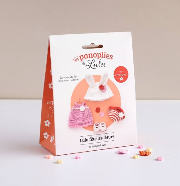 Vous allez adorer la panoplie de ce petit kit de crochet « Lulu fête les fleurs » issu de la collection capsule de Lucienne Compotine !
