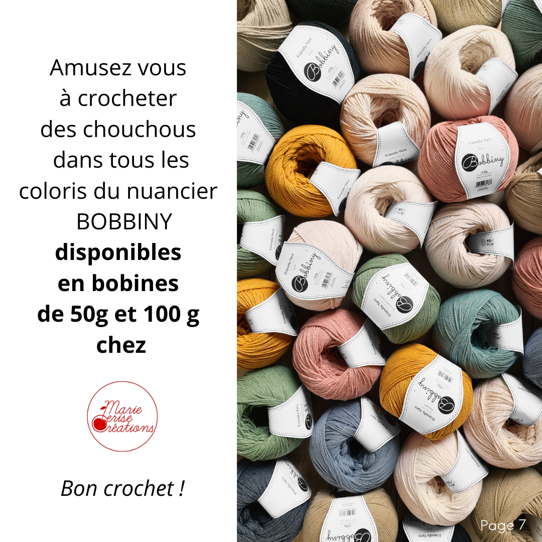 Vous pouvez choisir de le crocheter dans tous les coloris de cotons Bobbiny Friendly Yarns