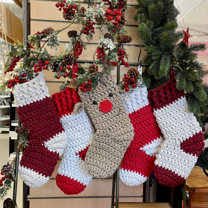 PATRON CROCHET PDF : Les Chaussettes de Noël 2 modèles : Bicolores et Rudolf - Niveau Intermédiaire