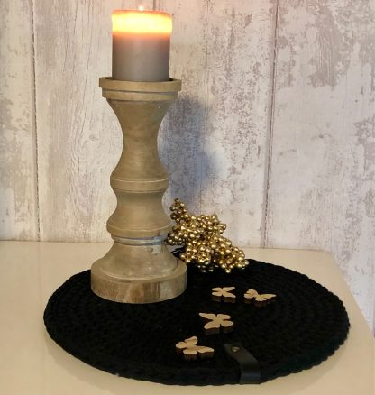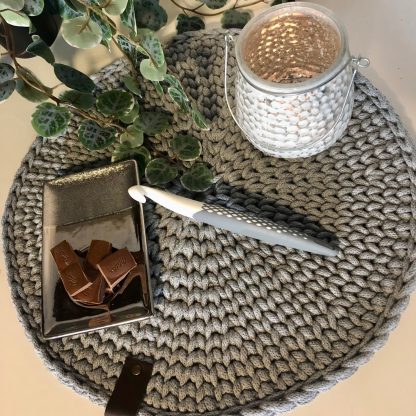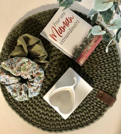 Il mesure environ 34-35 cm de diamètre (s’il vous reste du fil vous pourrez le crocheter plus grand ou en crocheter un autre plus petit coordonné)