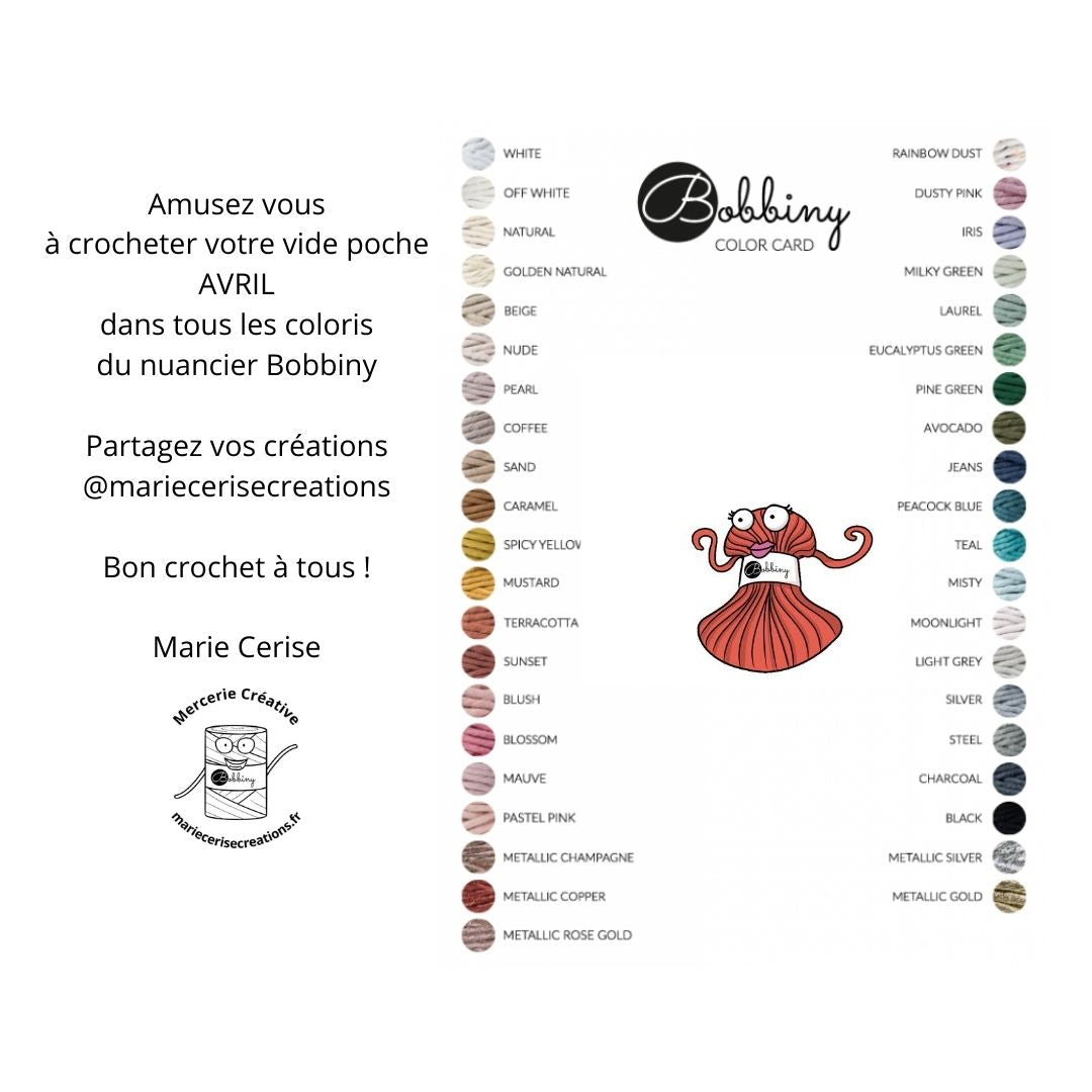 Avec ce patron crochet, vous allez pouvoir réaliser vous même facilement votre vide poche AVRIL chez vous.