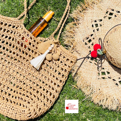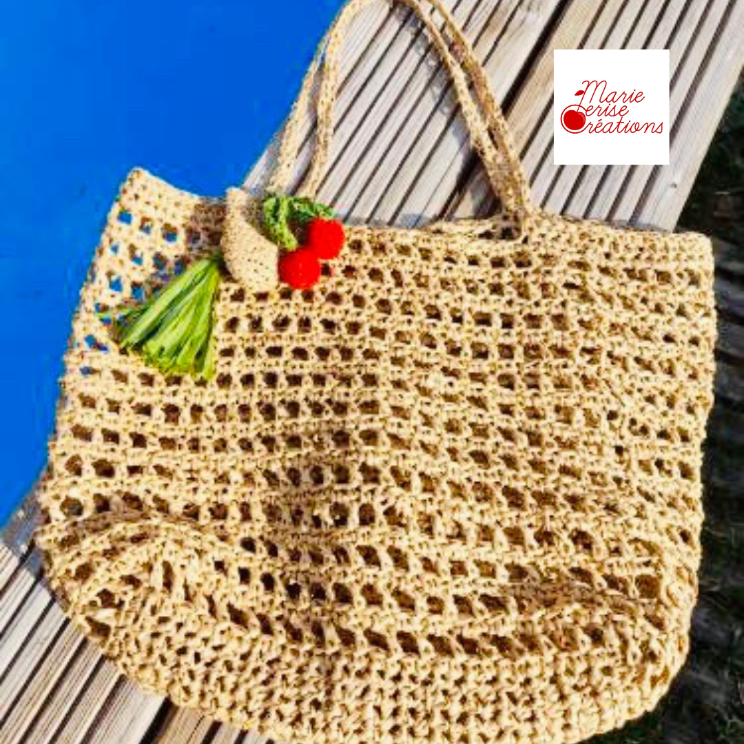 PATRON PDF CROCHET : Charms Porte-clés Cerises + Totebag + Pompon en Raphia - Niveau Débutant