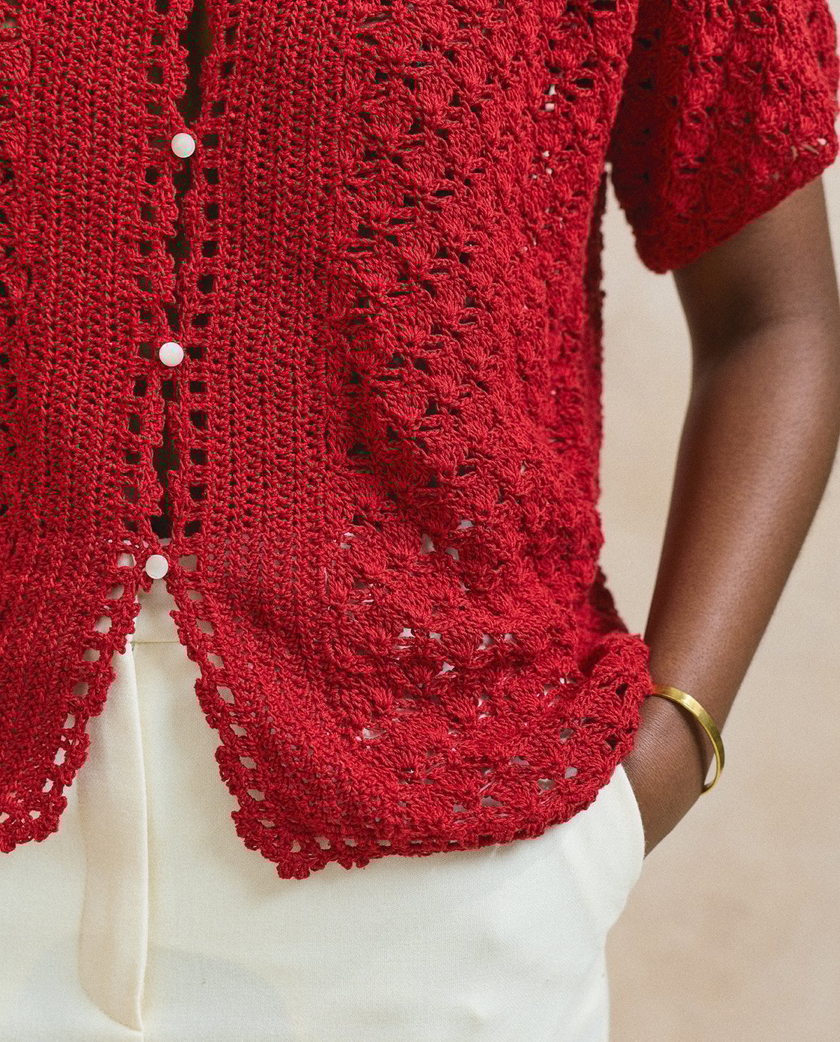 Fluide et élégante, cette chemise Isée se crochète en fil P. Bamboo Silk, alliant viscose et soie pour un confort et un tombé exceptionnels.