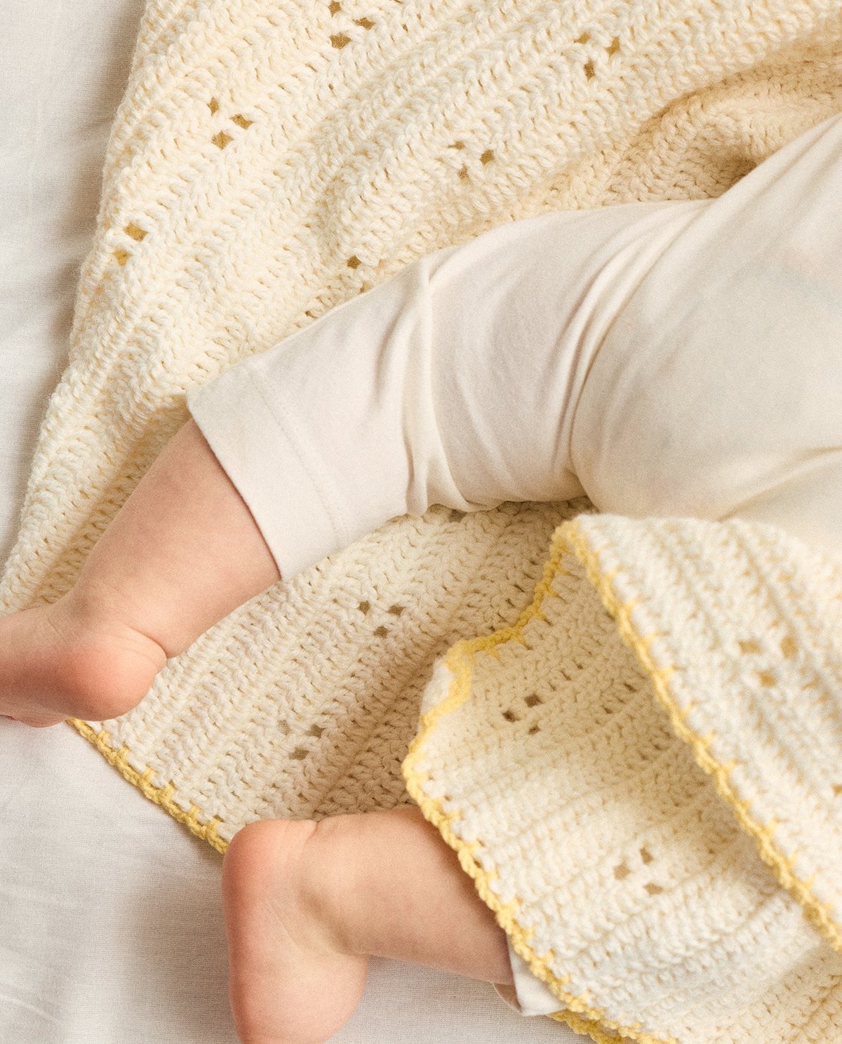 Douce et apaisante, cette couverture Kléa est idéale pour envelopper bébé de tendresse. Un modèle facile à crocheter pour un résultat charmant.