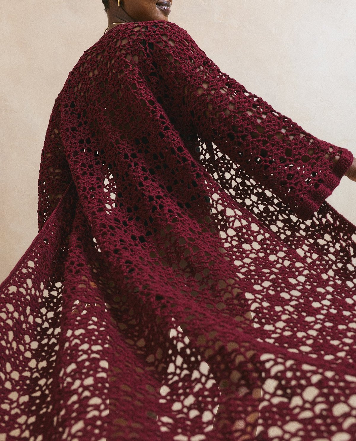 Adoptez un style bohème chic avec le gilet Honoré, une pièce unique à crocheter en Phil Coton 3, disponible en version longue ou courte et sublimée par des franges.