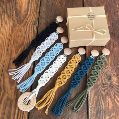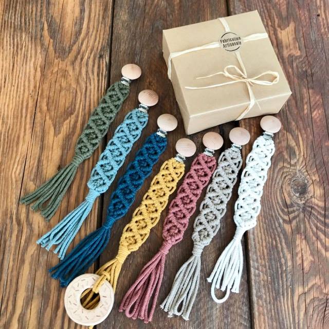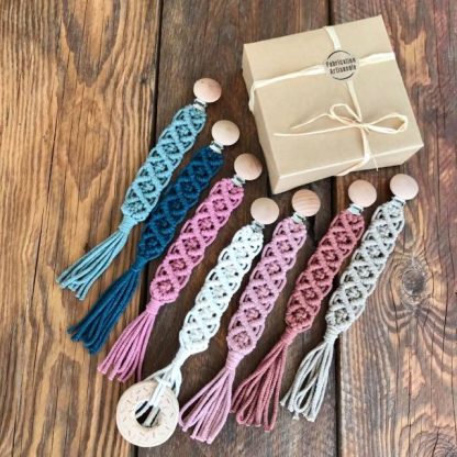 Avec ce patron pdf, vous allez pouvoir réaliser vous même votre Attache Tétine Sucette Macramé chez vous.