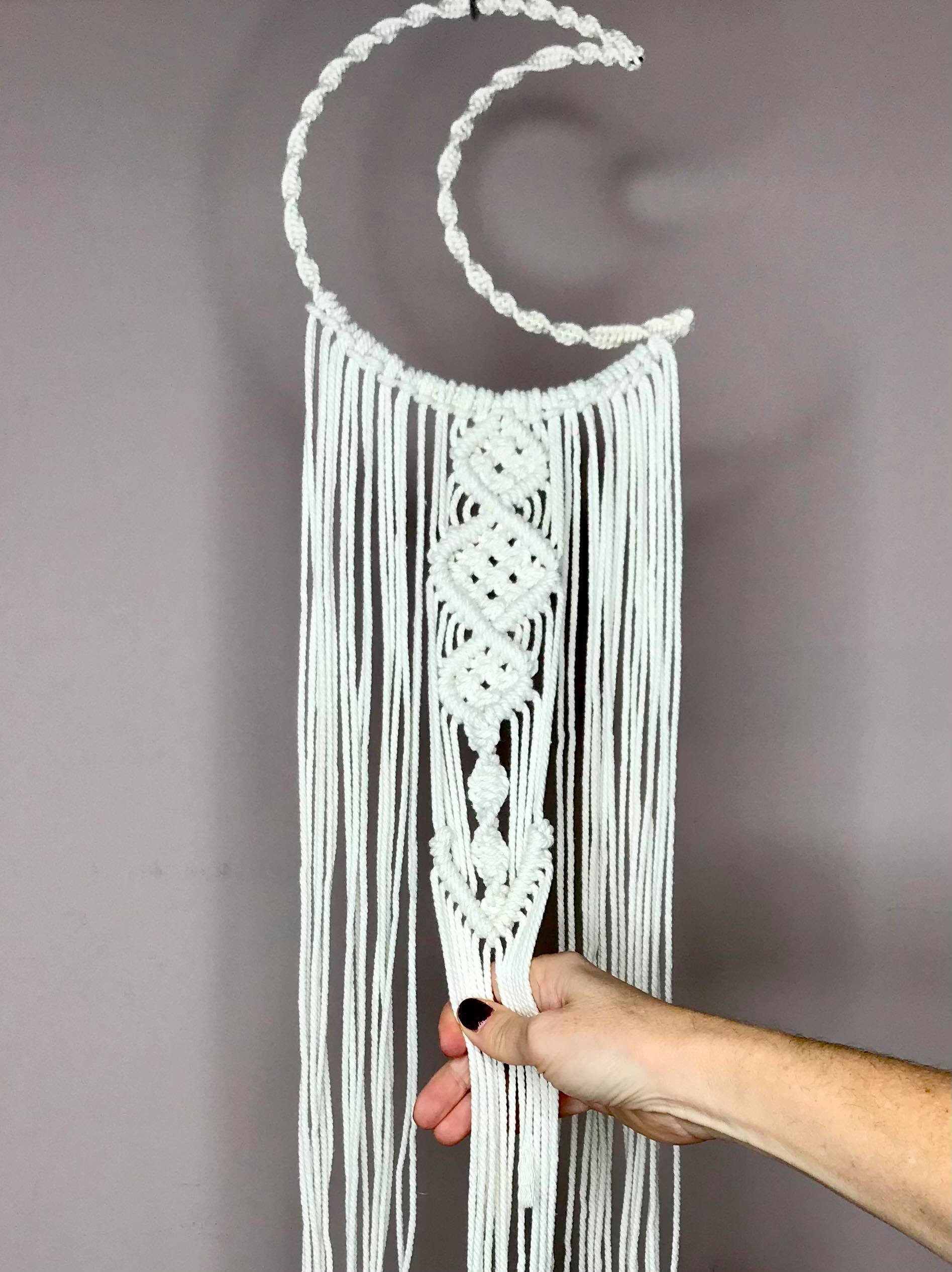 Cette lune macramé est votre nouvel accessoire original pour la décoration de votre maison.