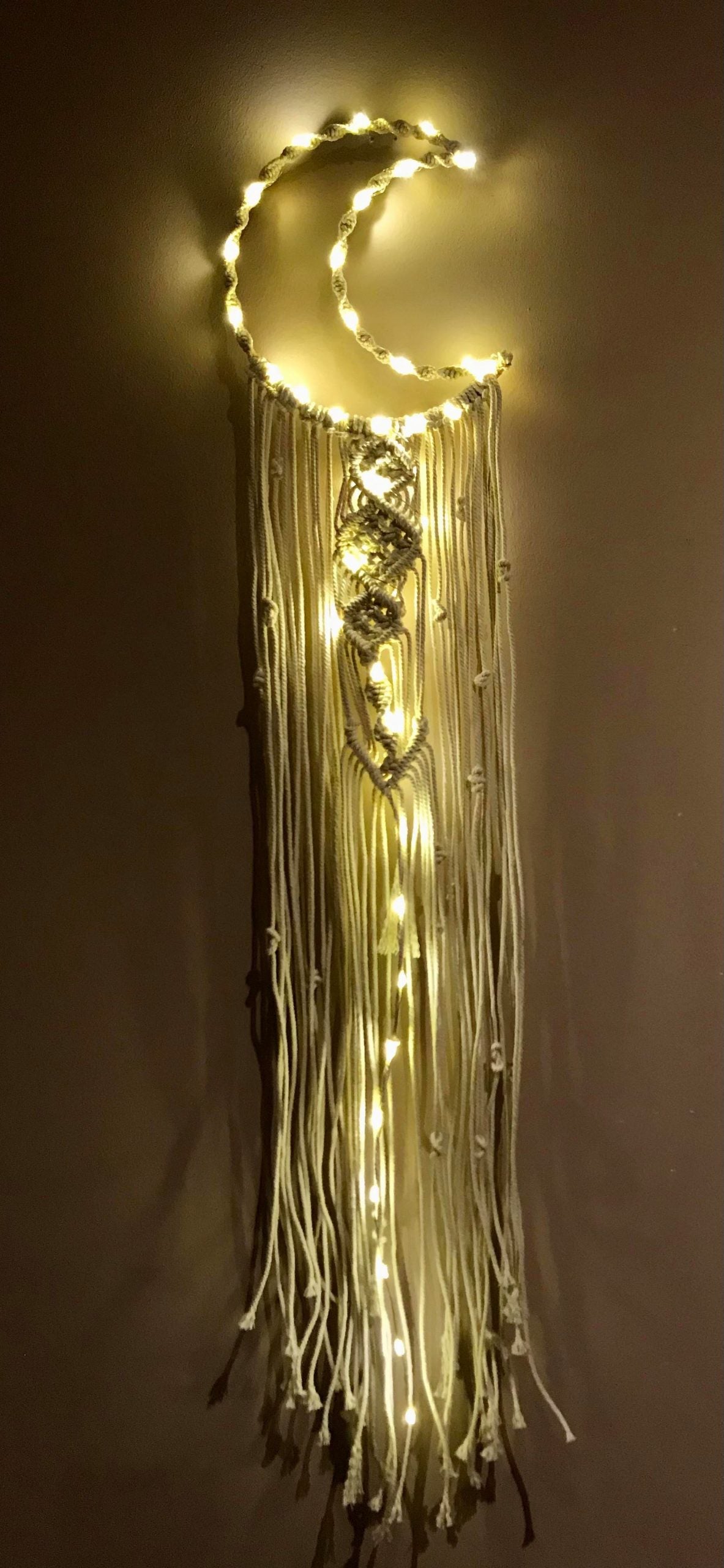 PATRON PDF MACRAME : Attrape Rêve Lune Veilleuse Lumineuse - Niveau Débutant