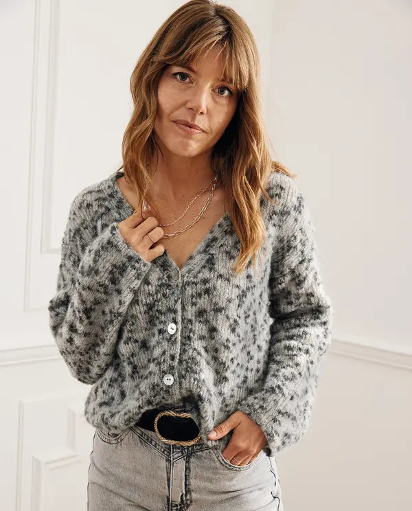 Rempart anti-froid et stylé. Vos aiguilles vont adorer dompter tout en douceur les points jersey pour créer ce modèle à tricoter facilement dans le fil fantaisie motifs léopard ultra doux avec kid mohair et laine mérinos PHIL LEO CONCEPT