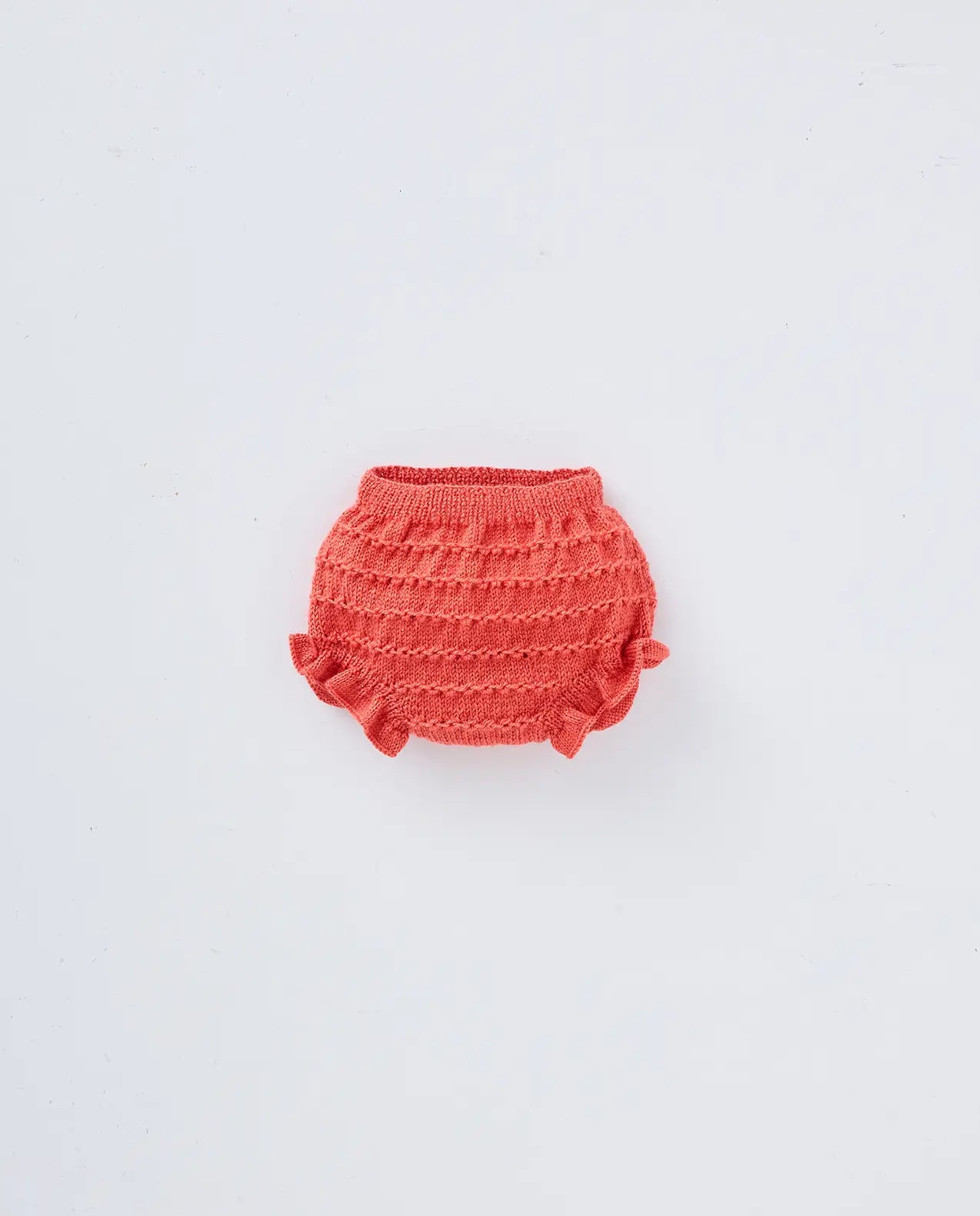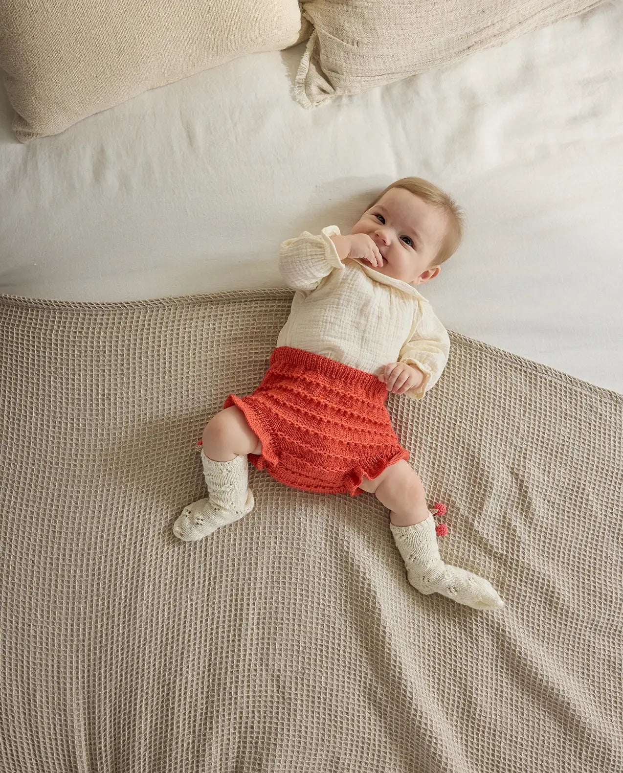 Jouez avec les points fantaisie, les côtes et les points jersey pour créer ce modèle de bloomer fantaisie à tricoter dans le fil tout doux spécial layette PHIL SUPER BABY.