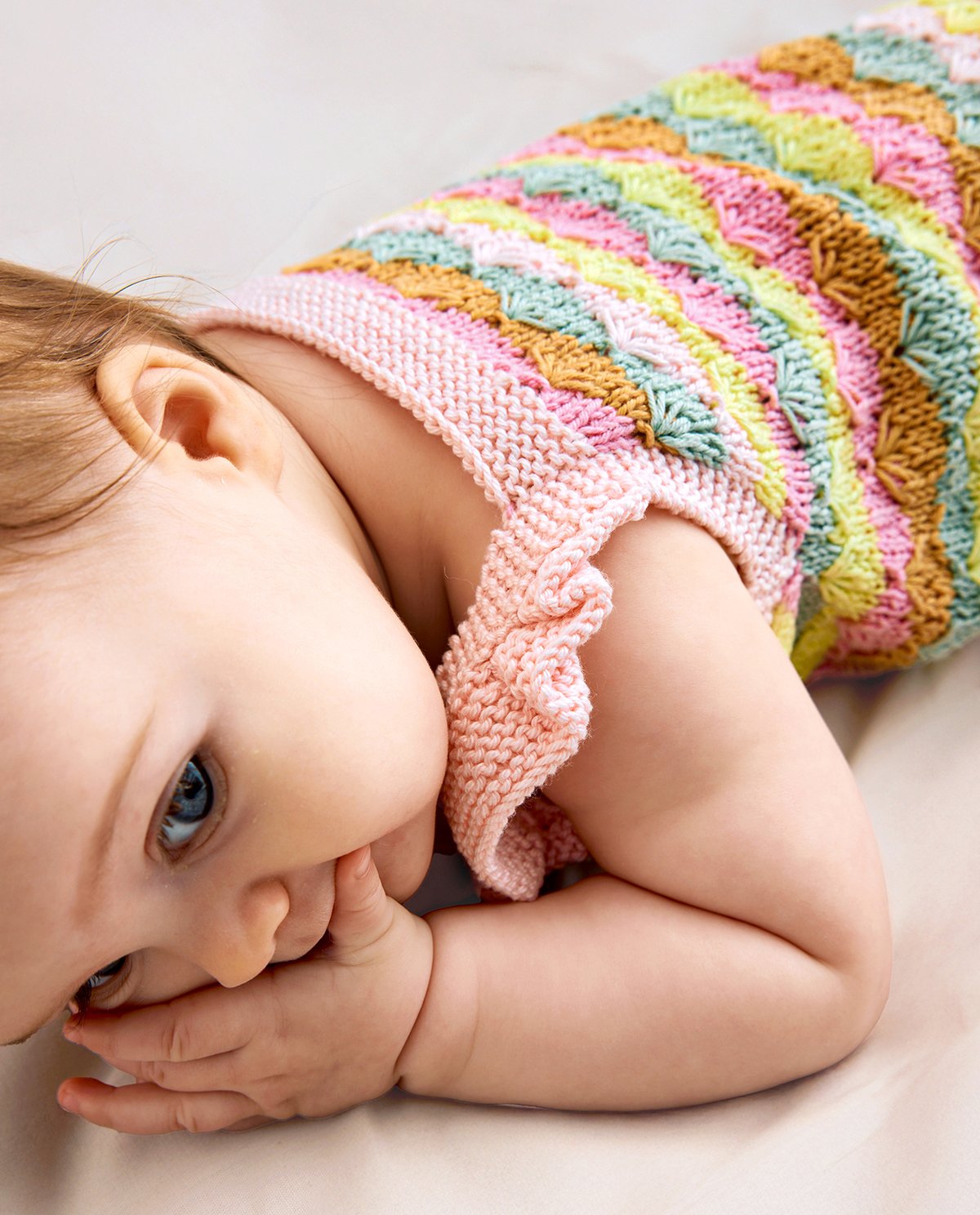 Adorable et confortable, cette barboteuse Églantine en fil P. Coton 3 se pare de volants pour un look craquant.