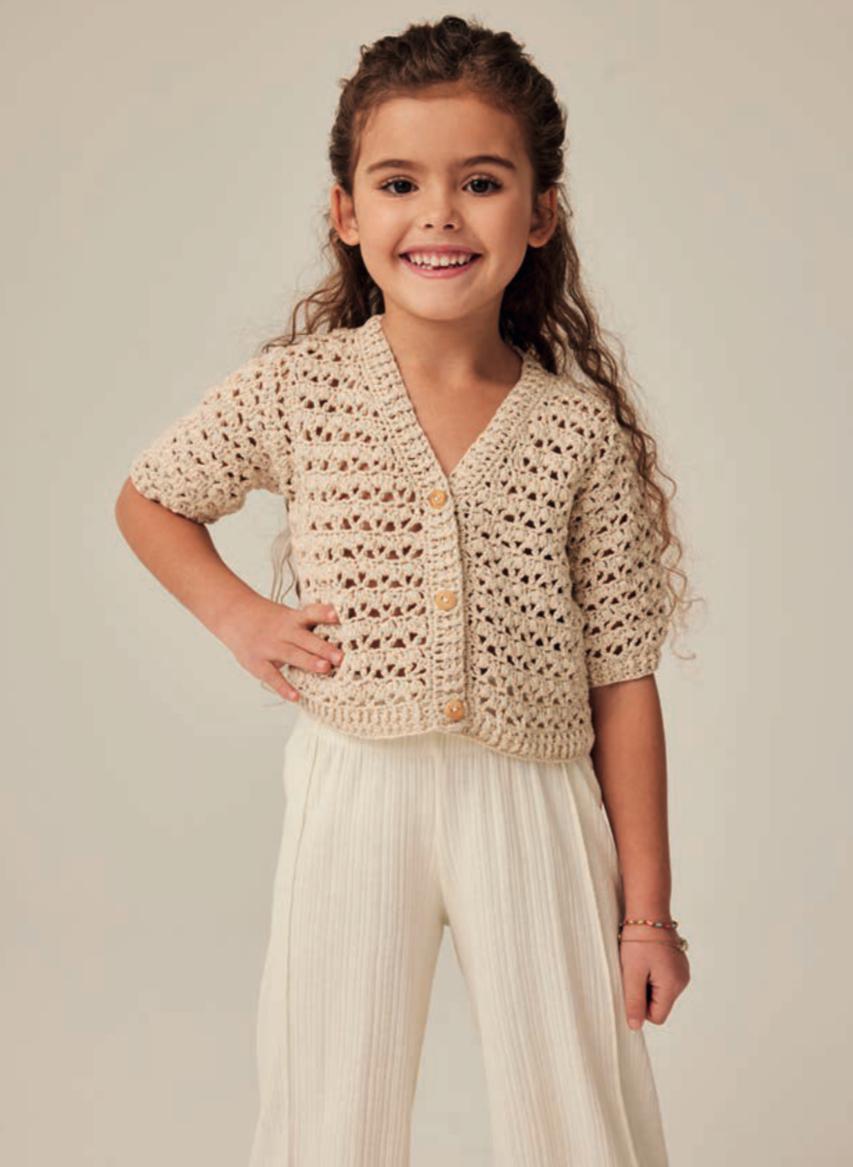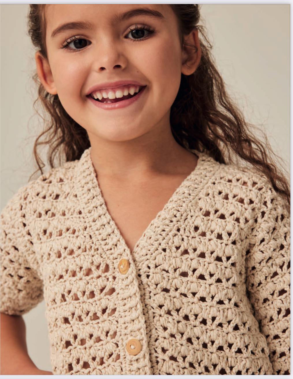 Le Crochet ne fait pas de jaloux et envahit aussi le vestiaire des petites filles. Jolies robes, petits gilets ou bob pour cet été... Style, confort et crochet !