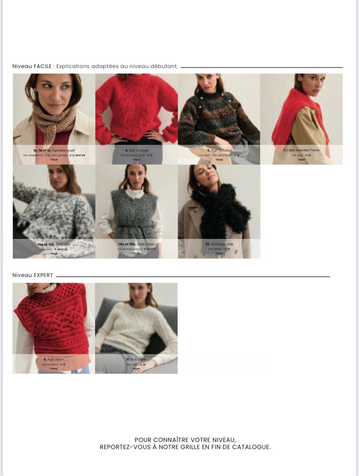 UN HIVER EN DÉTAILS,L'ÉLÉGANCE EN HÉRITAGE. Cet automne-hiver, Phildar signe une collection femme à l'image de l'élégance à la française : chic sans effort, raffinée dans les détails.assumée dans le style. Entre allure preppy décontractée, touches rétro et confort modernechaque pièce raconte une sihouette contemporaine.Faux pull noué sur les épaules, petits foulards & incontournables de lasaison : pull sans manche, tendance fausse fourrure .. Nos modèles seportent seuls ou en total look.Place à une élégance qui se tricote dans les moindres détails, avecl'arrivée de nouveautés 100 % naturelles comme la Phil Alpaga boucléet le Phil Mérinos soie, pour vous offrir un vestiaire aussi intemporel qu'inspiré.