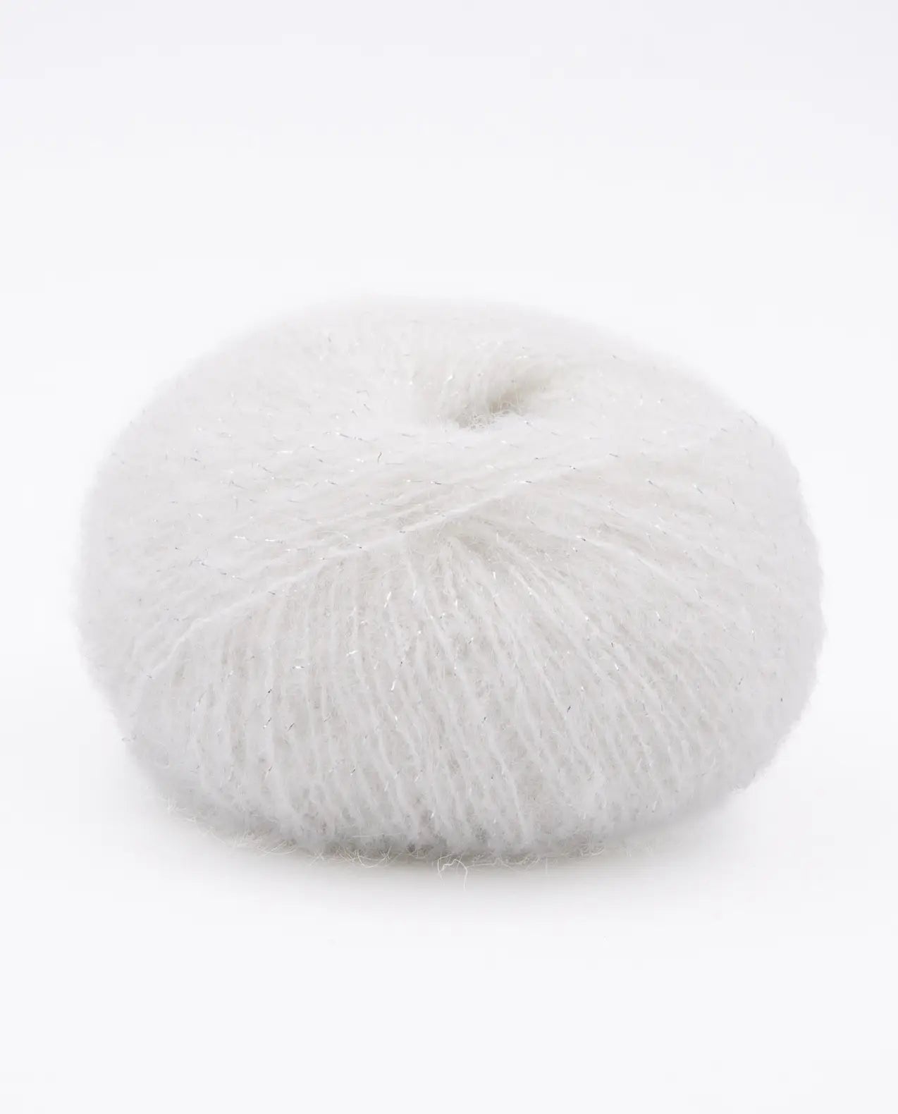 Comme sa grande sœur, elle est composée de matières naturellement chaudes (kid mohair & laine) et celle-ci se pare en plus d’une touche de lurex qui apportera une fantaisie délicate et raffinée à vos ouvrages.