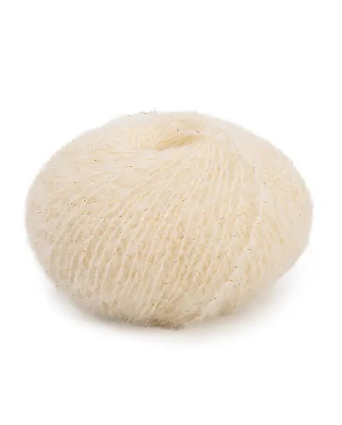 Comme sa grande sœur, elle est composée de matières naturellement chaudes (kid mohair & laine) et celle-ci se pare en plus d’une touche de lurex qui apportera une fantaisie délicate et raffinée à vos ouvrages.
