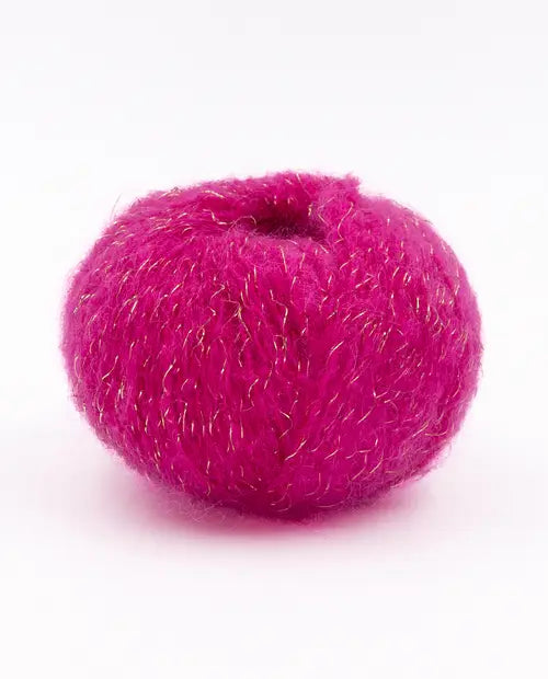Comme sa grande sœur, elle est composée de matières naturellement chaudes (kid mohair & laine) et celle-ci se pare en plus d’une touche de lurex qui apportera une fantaisie délicate et raffinée à vos ouvrages.