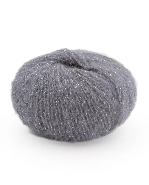 Comme sa grande sœur, elle est composée de matières naturellement chaudes (kid mohair & laine) et celle-ci se pare en plus d’une touche de lurex qui apportera une fantaisie délicate et raffinée à vos ouvrages.