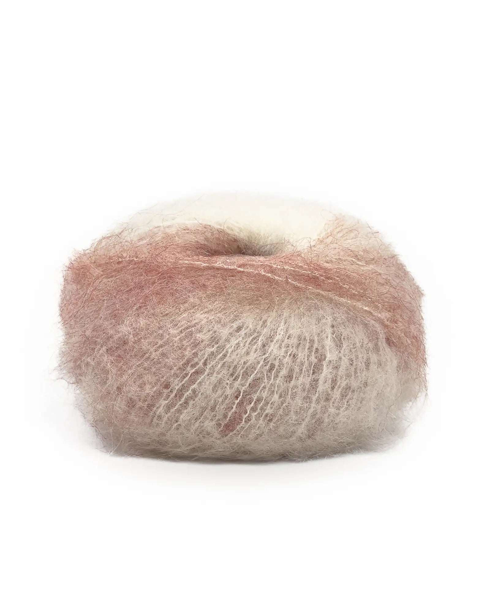 Comme ses grandes sœurs, c’est un fil noble mousseux de fabrication italienne, toujours aussi vaporeux & léger, composé très majoritairement de matières naturellement chaudes (kid mohair & laine).