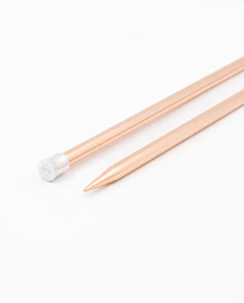 Tricoter avec style grâce à cette nouvelle gamme d’ aiguilles droites rose effet gold.
