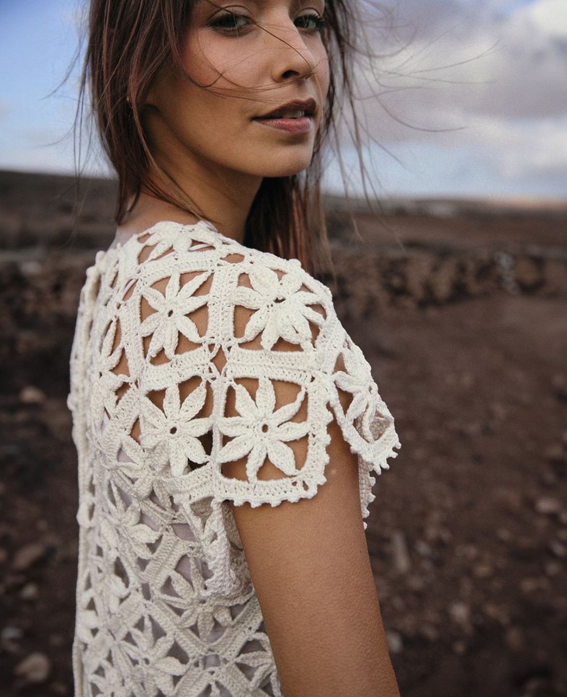 Le top Paula, avec ses jolies fleurs est un modèle expert à réaliser au crochet 2,5 et 3 avec le Phil Perlé 5.