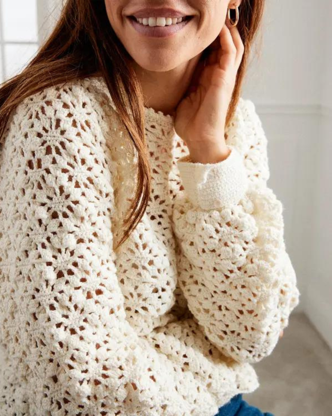 Avec ce patron crochet, vous allez pouvoir réaliser vous même votre pull en dentelle FALLON chez vous.