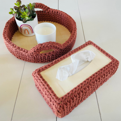 KIT DIY CROCHET : Le plateau CANDICE + La Boîte à Mouchoirs THEO – Niveau Débutant