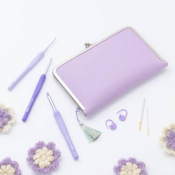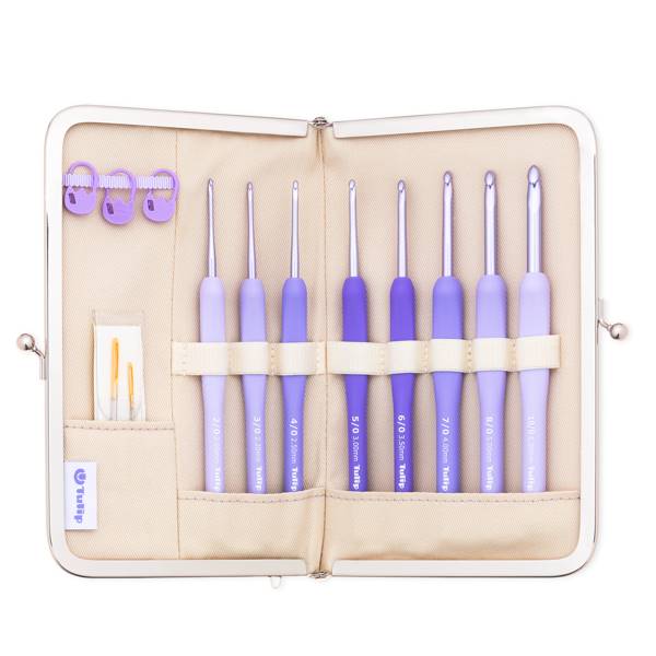 TULIP : SET DE 8 CROCHETS PREMIUM ETIMO MURASAKI + 2 AIGUILLES + 3 MARQUEURS + ETUI DE RANGEMENT A POMPON