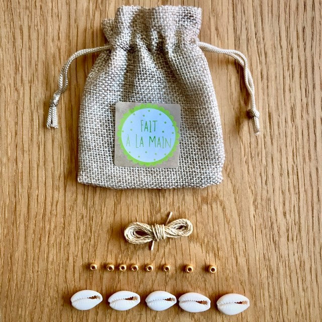 Ce kit DIY macramé contient tout le nécessaire pour créer facilement votre bracelet coquillages avec votre enfant (lors d’un atelier parent enfant).